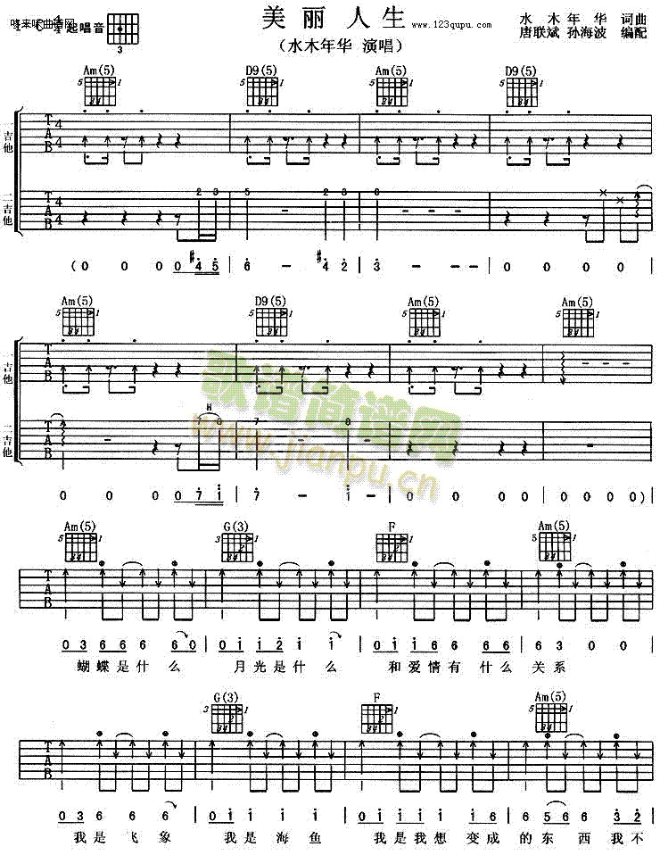 公众号:绵羊乐谱 美丽人生(水木年华)免费弹唱吉他谱_六线谱:未知 点击: 1000 图片可能经过缩放,手机长按或点开后长按保存,电脑鼠标右键保存. (网络) 公众号:绵羊乐谱 | 官方QQ群:978773290 不吃独食,学会分享!本文链接:http://www.shaomingyang.com/btb/17321.html 转载请标明出处,尊重原创(๑╹◡╹)ノ。如信息有误或版权疑问,请通过网站底部联系我们会第一时间处理,感谢理解支持(◕ᴗ◕✿)!
