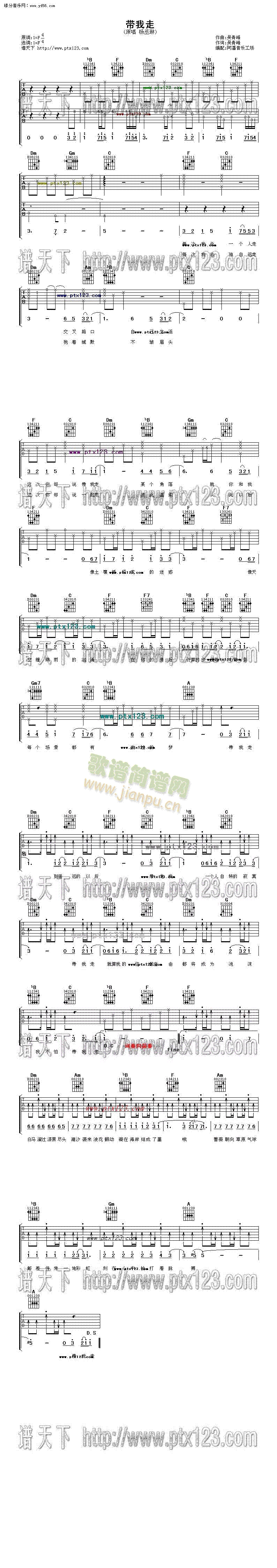 公众号:绵羊乐谱 带我走免费弹唱吉他谱_六线谱:杨丞琳 点击: 1000 图片可能经过缩放,另存可看到原图,在图片上点鼠标右键,选图片另存为,可以保存到你的电脑中. (网络) 公众号:绵羊乐谱 | 官方QQ群:978773290 不吃独食,学会分享!本文链接:http://www.shaomingyang.com/btb/17858.html 转载请标明出处,尊重原创(๑╹◡╹)ノ。如信息有误或版权疑问,请通过网站底部联系我们会第一时间处理,感谢理解支持(◕ᴗ◕✿)!