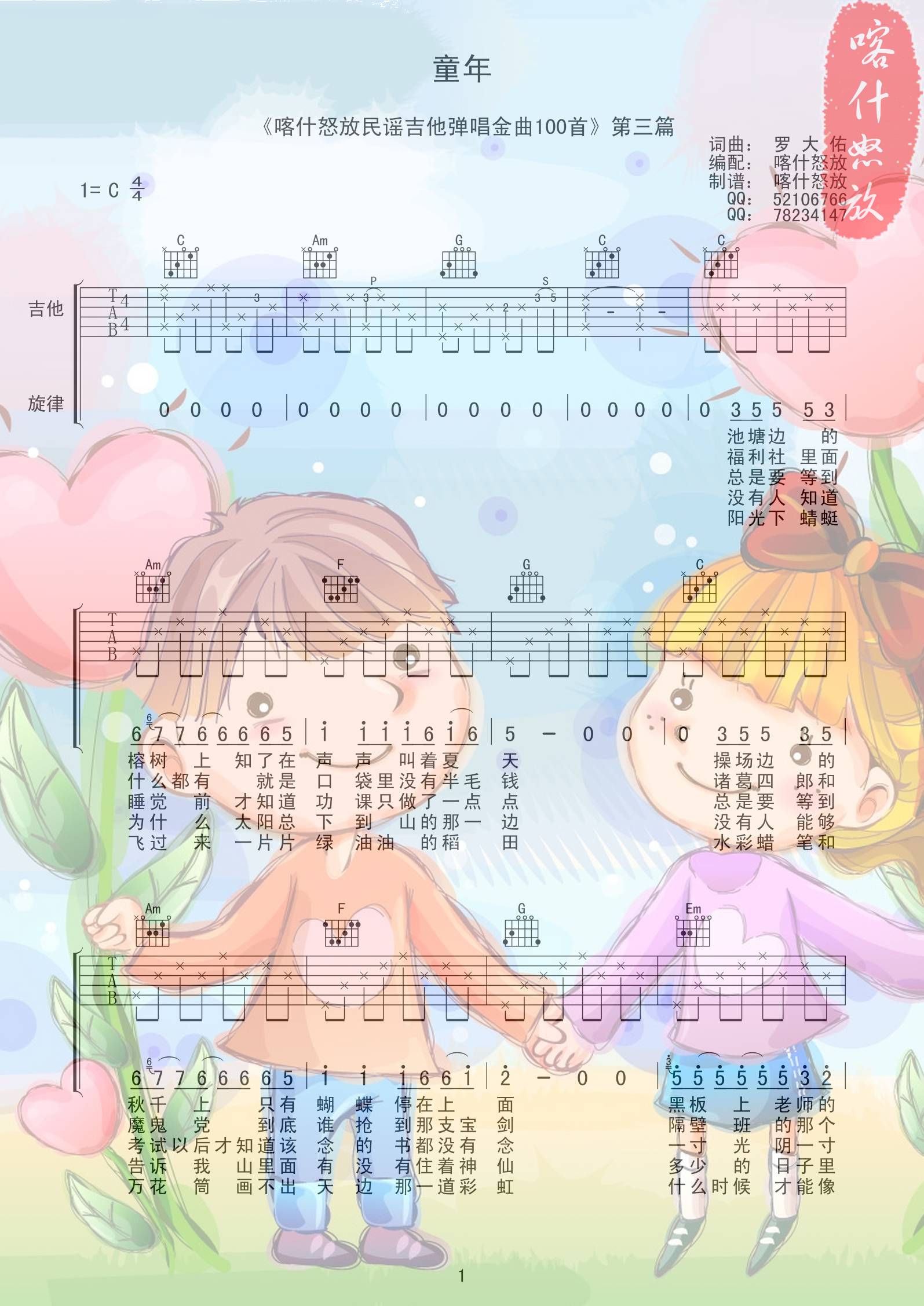 公众号:绵羊乐谱 童年吉他谱 喀什怒放免费弹唱吉他谱_六线谱:罗大佑 点击: 1000 图片可能经过缩放,手机长按或点开后长按保存,电脑鼠标右键保存. (乐友loveqjt传谱) 公众号:绵羊乐谱 | 官方QQ群:978773290 不吃独食,学会分享!本文链接:http://www.shaomingyang.com/btb/18152.html 转载请标明出处,尊重原创(๑╹◡╹)ノ。如信息有误或版权疑问,请通过网站底部联系我们会第一时间处理,感谢理解支持(◕ᴗ◕✿)!