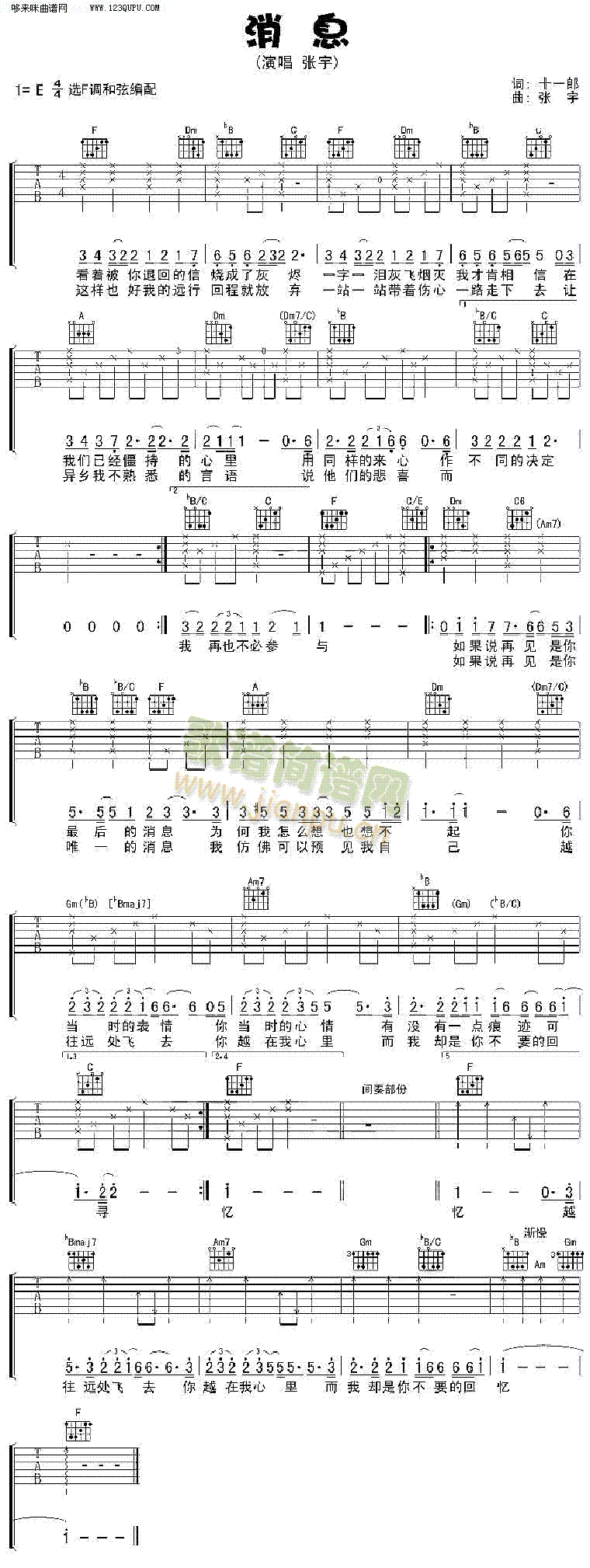 公众号:绵羊乐谱 消息—张宇免费弹唱吉他谱_六线谱:未知 点击: 1000 图片可能经过缩放,手机长按或点开后长按保存,电脑鼠标右键保存. (网络) 公众号:绵羊乐谱 | 官方QQ群:978773290 不吃独食,学会分享!本文链接:http://www.shaomingyang.com/btb/18153.html 转载请标明出处,尊重原创(๑╹◡╹)ノ。如信息有误或版权疑问,请通过网站底部联系我们会第一时间处理,感谢理解支持(◕ᴗ◕✿)!