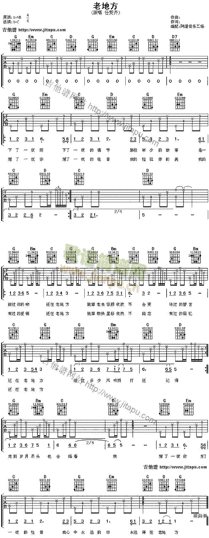 公众号:绵羊乐谱 老地方免费弹唱吉他谱_六线谱:任贤齐 点击: 1000 图片可能经过缩放,手机长按或点开后长按保存,电脑鼠标右键保存. (网络) 公众号:绵羊乐谱 | 官方QQ群:978773290 不吃独食,学会分享!本文链接:http://www.shaomingyang.com/btb/18176.html 转载请标明出处,尊重原创(๑╹◡╹)ノ。如信息有误或版权疑问,请通过网站底部联系我们会第一时间处理,感谢理解支持(◕ᴗ◕✿)!