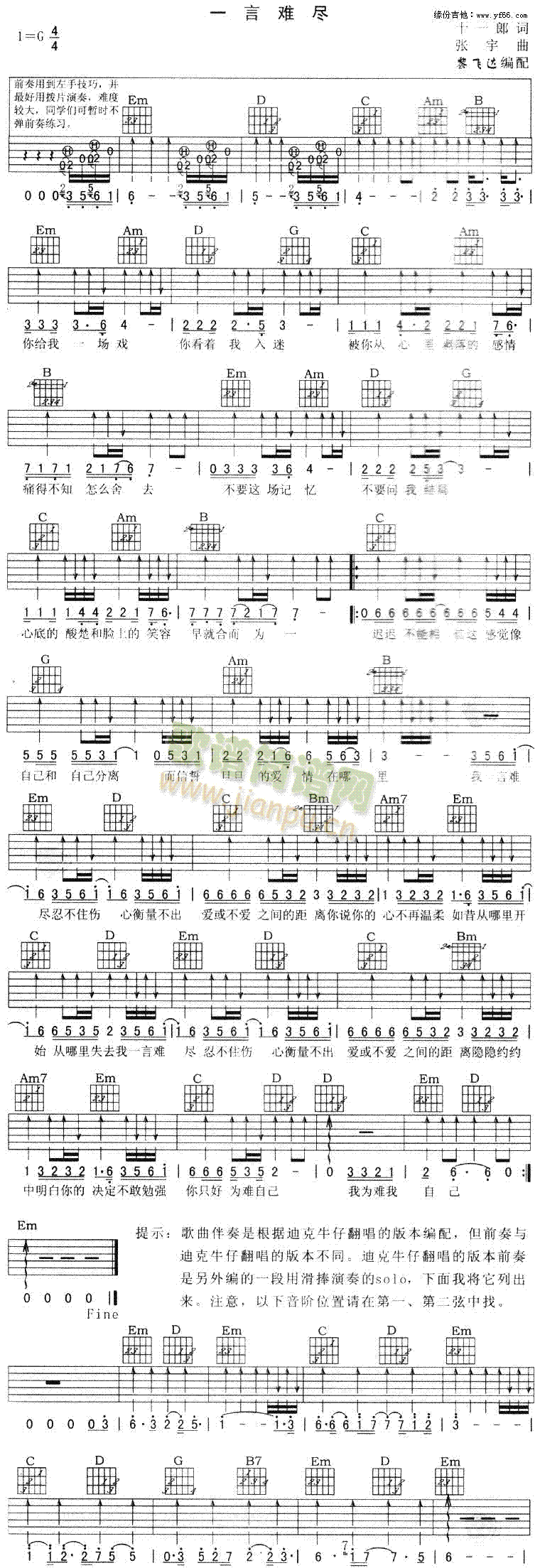 公众号:绵羊乐谱 一言难尽免费弹唱吉他谱_六线谱:迪克牛仔 点击: 1000 图片可能经过缩放,另存可看到原图,在图片上点鼠标右键,选图片另存为,可以保存到你的电脑中. (网络) 公众号:绵羊乐谱 | 官方QQ群:978773290 不吃独食,学会分享!本文链接:http://www.shaomingyang.com/btb/19135.html 转载请标明出处,尊重原创(๑╹◡╹)ノ。如信息有误或版权疑问,请通过网站底部联系我们会第一时间处理,感谢理解支持(◕ᴗ◕✿)!