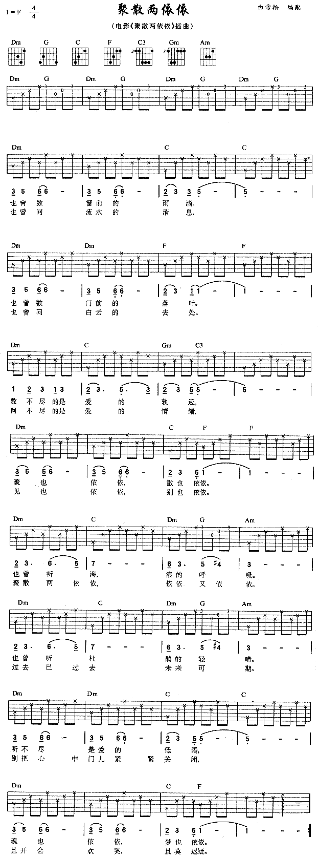 公众号:绵羊乐谱 聚散两依依(同名电影插曲)免费弹唱吉他谱_六线谱:许茹芸 点击: 1000 图片可能经过缩放,手机长按或点开后长按保存,电脑鼠标右键保存. (网友郑波提供) 公众号:绵羊乐谱 | 官方QQ群:978773290 不吃独食,学会分享!本文链接:http://www.shaomingyang.com/btb/19973.html 转载请标明出处,尊重原创(๑╹◡╹)ノ。如信息有误或版权疑问,请通过网站底部联系我们会第一时间处理,感谢理解支持(◕ᴗ◕✿)!