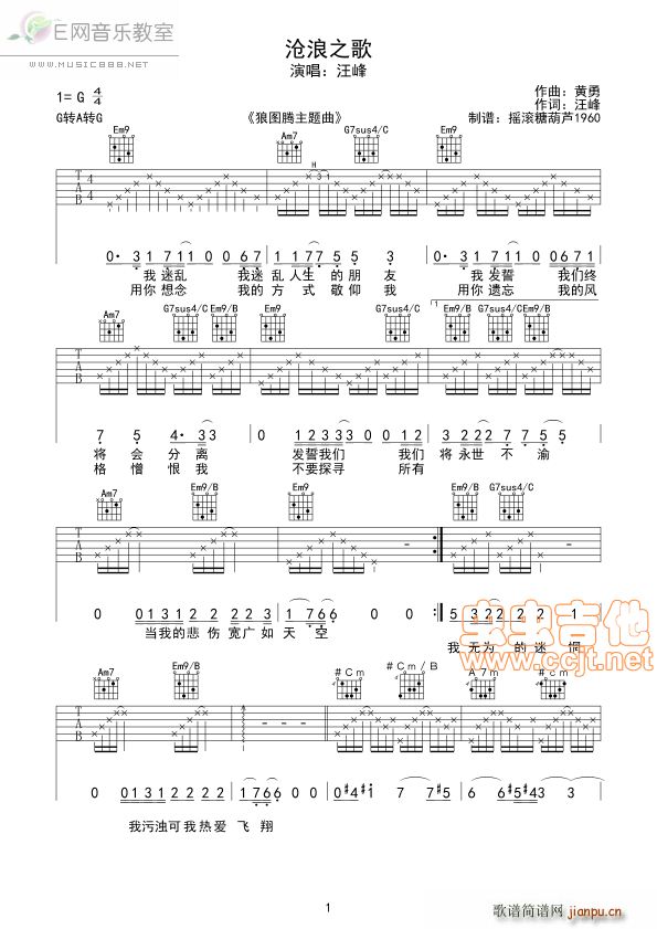公众号:绵羊乐谱 沧浪之歌-汪峰(狼图腾主题曲 )免费弹唱吉他谱_六线谱/词曲: 点击: 1000 图片可能经过缩放,手机长按或点开后长按保存,电脑鼠标右键保存. (网络) 公众号:绵羊乐谱 | 官方QQ群:978773290 不吃独食,学会分享!本文链接:http://www.shaomingyang.com/btb/20364.html 转载请标明出处,尊重原创(๑╹◡╹)ノ。如信息有误或版权疑问,请通过网站底部联系我们会第一时间处理,感谢理解支持(◕ᴗ◕✿)!