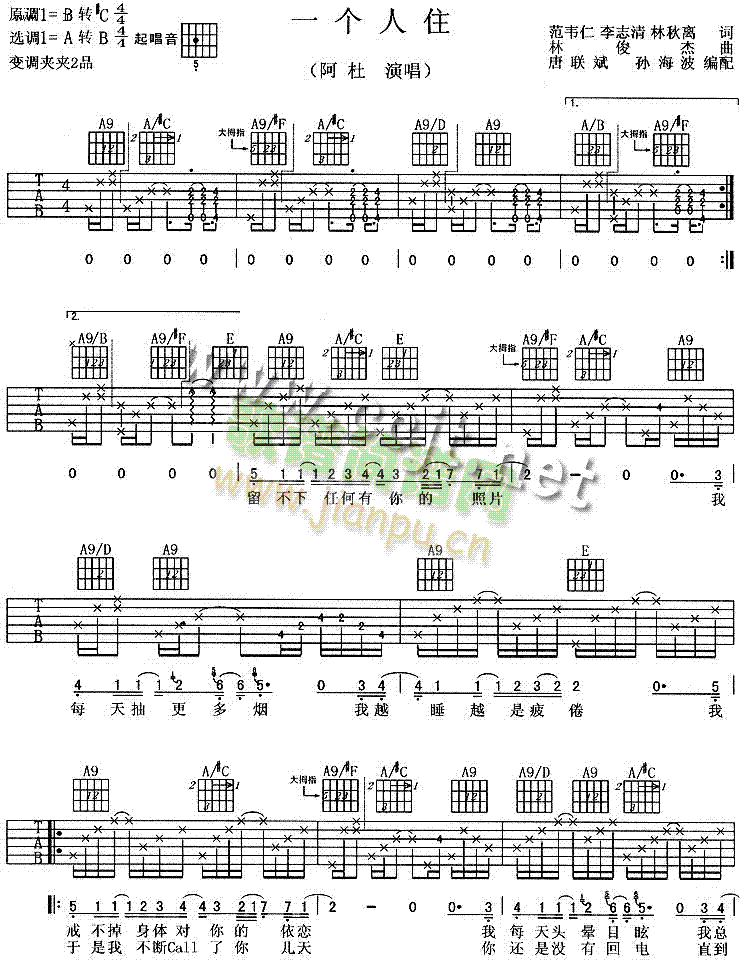 公众号:绵羊乐谱 一个人住吉他谱( 六线谱)-免费弹唱吉他谱_六线谱:未知 点击: 1000 图片可能经过缩放,手机长按或点开后长按保存,电脑鼠标右键保存. (网络) 公众号:绵羊乐谱 | 官方QQ群:978773290 不吃独食,学会分享!本文链接:http://www.shaomingyang.com/btb/20888.html 转载请标明出处,尊重原创(๑╹◡╹)ノ。如信息有误或版权疑问,请通过网站底部联系我们会第一时间处理,感谢理解支持(◕ᴗ◕✿)!