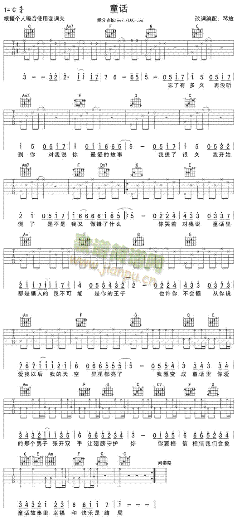 公众号:绵羊乐谱 童话-初级免费弹唱吉他谱_六线谱:光良 点击: 1000 图片可能经过缩放,手机长按或点开后长按保存,电脑鼠标右键保存. (网络) 公众号:绵羊乐谱 | 官方QQ群:978773290 不吃独食,学会分享!本文链接:http://www.shaomingyang.com/btb/20905.html 转载请标明出处,尊重原创(๑╹◡╹)ノ。如信息有误或版权疑问,请通过网站底部联系我们会第一时间处理,感谢理解支持(◕ᴗ◕✿)!