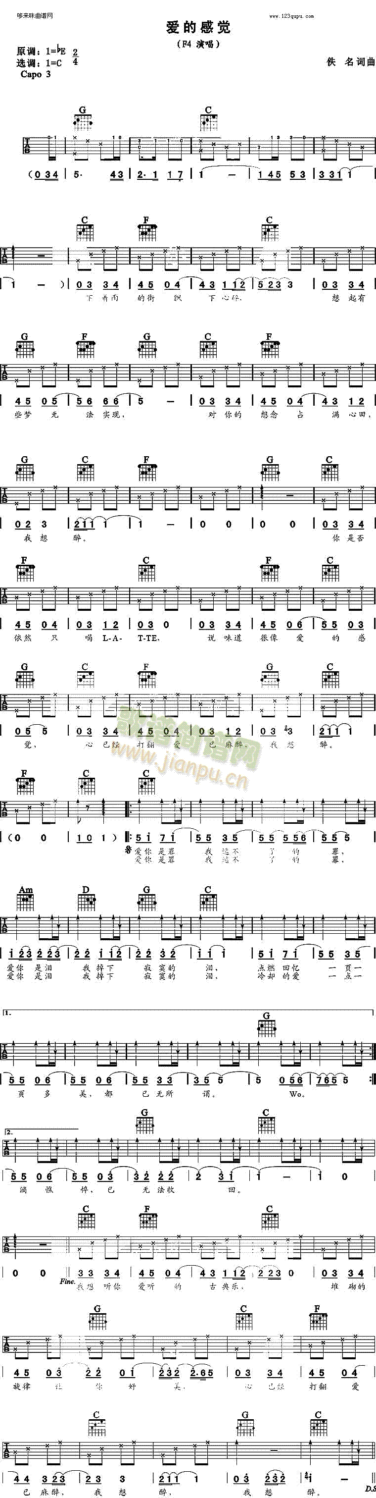公众号:绵羊乐谱 爱的感觉(f4)免费弹唱吉他谱_六线谱:未知 点击: 1000 图片可能经过缩放,手机长按或点开后长按保存,电脑鼠标右键保存. (网络) 公众号:绵羊乐谱 | 官方QQ群:978773290 不吃独食,学会分享!本文链接:http://www.shaomingyang.com/btb/21543.html 转载请标明出处,尊重原创(๑╹◡╹)ノ。如信息有误或版权疑问,请通过网站底部联系我们会第一时间处理,感谢理解支持(◕ᴗ◕✿)!