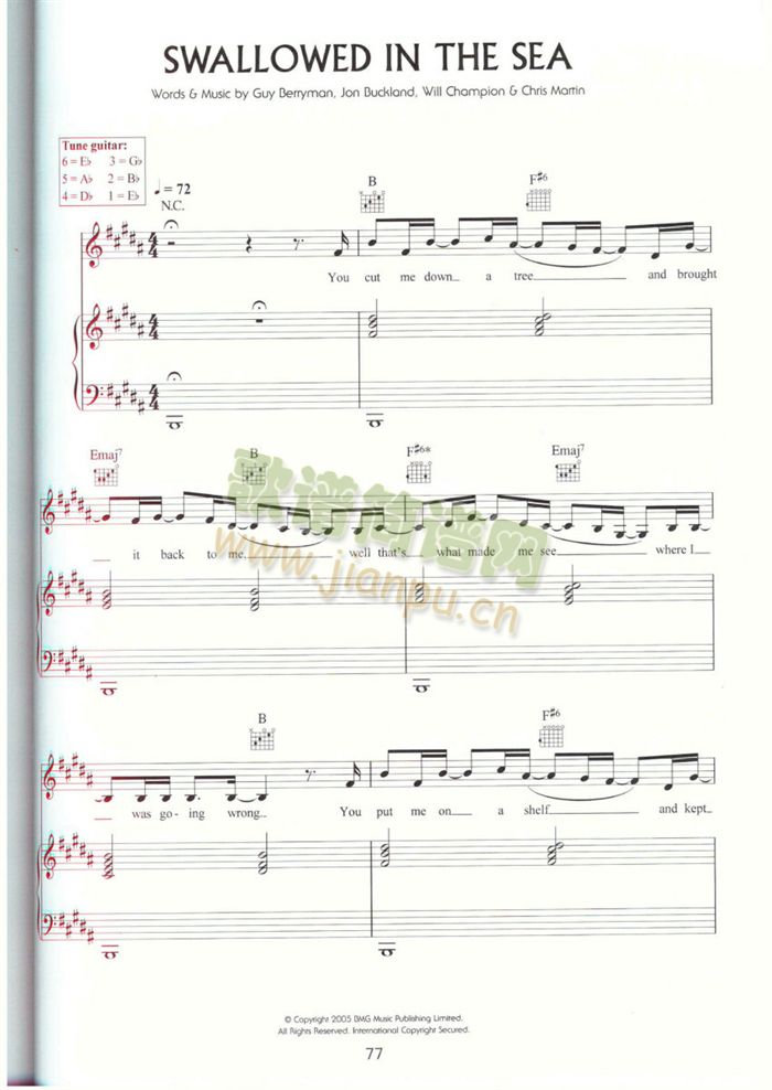 公众号:绵羊乐谱 SWALLOWED IN THE SEA免费弹唱吉他谱_六线谱: 点击: 1000 图片可能经过缩放,手机长按或点开后长按保存,电脑鼠标右键保存. (乐友fengweijie521传谱) 公众号:绵羊乐谱 | 官方QQ群:978773290 不吃独食,学会分享!本文链接:http://www.shaomingyang.com/btb/21945.html 转载请标明出处,尊重原创(๑╹◡╹)ノ。如信息有误或版权疑问,请通过网站底部联系我们会第一时间处理,感谢理解支持(◕ᴗ◕✿)!
