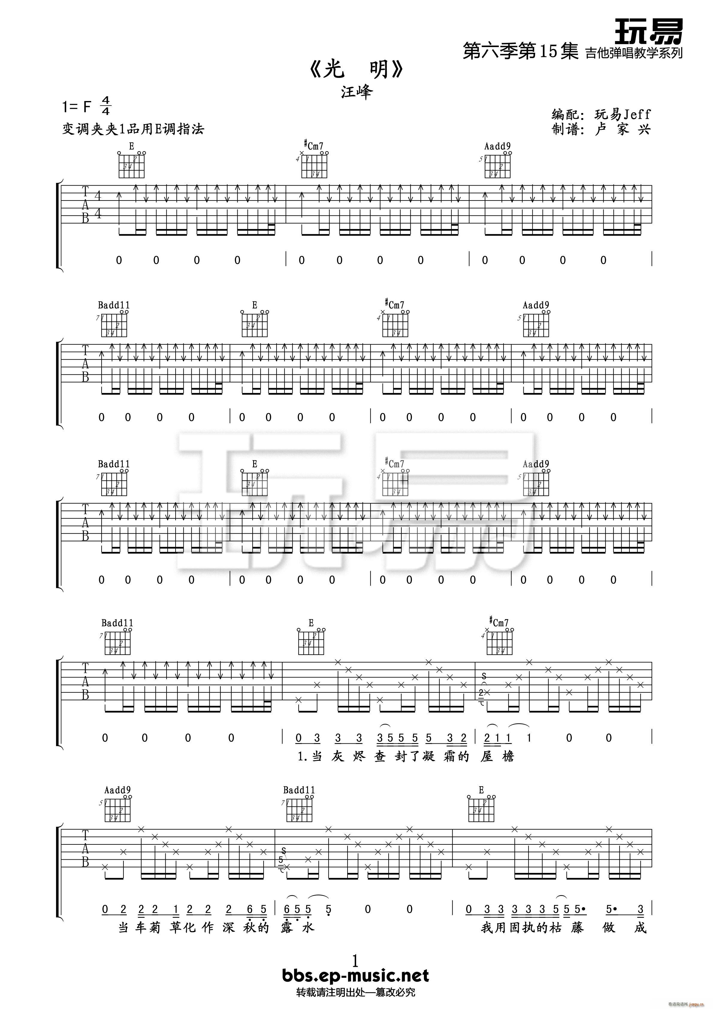 公众号:绵羊乐谱 光明 卢家兴免费弹唱吉他谱_六线谱/词曲:汪峰 点击: 1000 图片可能经过缩放,手机长按或点开后长按保存,电脑鼠标右键保存. (卢家兴) 公众号:绵羊乐谱 | 官方QQ群:978773290 不吃独食,学会分享!本文链接:http://www.shaomingyang.com/btb/22338.html 转载请标明出处,尊重原创(๑╹◡╹)ノ。如信息有误或版权疑问,请通过网站底部联系我们会第一时间处理,感谢理解支持(◕ᴗ◕✿)!