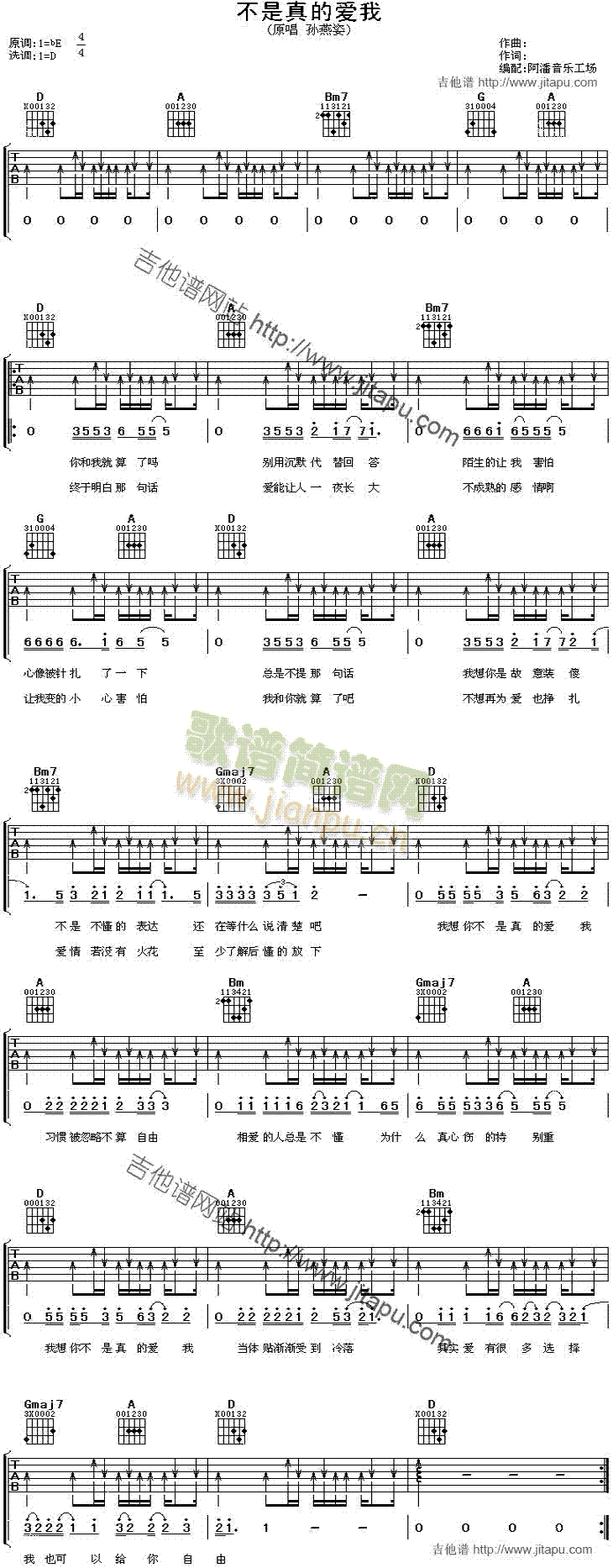 公众号:绵羊乐谱 不是真的爱我免费弹唱吉他谱_六线谱:孙燕姿 点击: 1000 图片可能经过缩放,手机长按或点开后长按保存,电脑鼠标右键保存. (网络) 公众号:绵羊乐谱 | 官方QQ群:978773290 不吃独食,学会分享!本文链接:http://www.shaomingyang.com/btb/22597.html 转载请标明出处,尊重原创(๑╹◡╹)ノ。如信息有误或版权疑问,请通过网站底部联系我们会第一时间处理,感谢理解支持(◕ᴗ◕✿)!