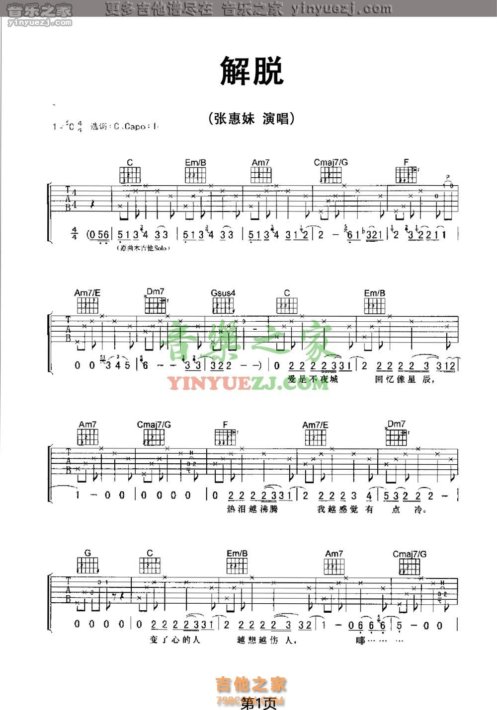 本章为“解脱吉他谱 张惠妹《解脱》C调吉他谱 ”音信,明了更众高清无码版本吉他谱、尤克里里、教学视频等音信,请眷注绵羊乐谱,咱们会连接更新。