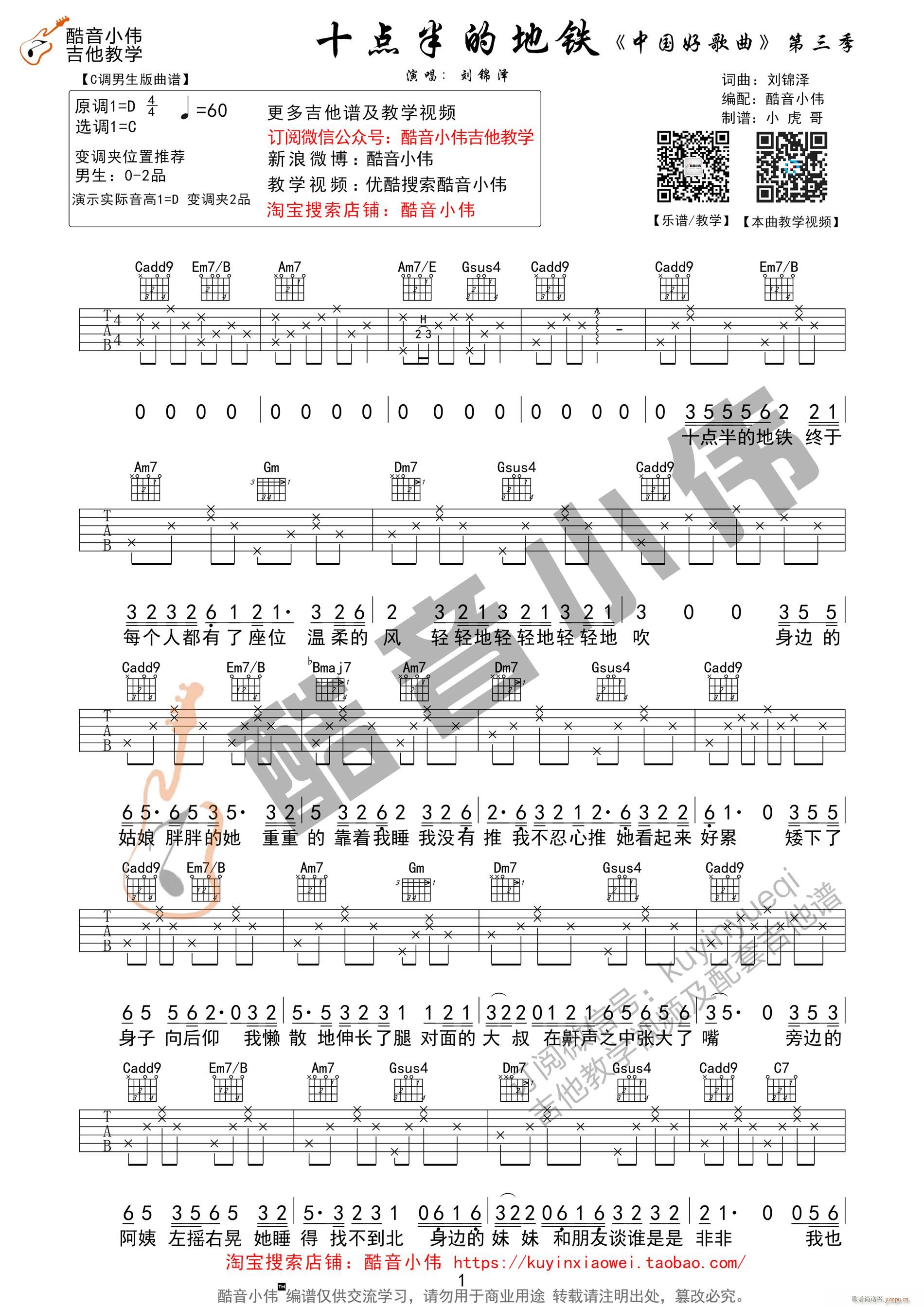 公众号:绵羊乐谱 十点半的地铁 C调指法( 编谱)免费弹唱吉他谱_六线谱/词曲:刘锦泽 点击: 1000 图片可能经过缩放,手机长按或点开后长按保存,电脑鼠标右键保存. (酷音小伟) 公众号:绵羊乐谱 | 官方QQ群:978773290 不吃独食,学会分享!本文链接:http://www.shaomingyang.com/btb/23323.html 转载请标明出处,尊重原创(๑╹◡╹)ノ。如信息有误或版权疑问,请通过网站底部联系我们会第一时间处理,感谢理解支持(◕ᴗ◕✿)!
