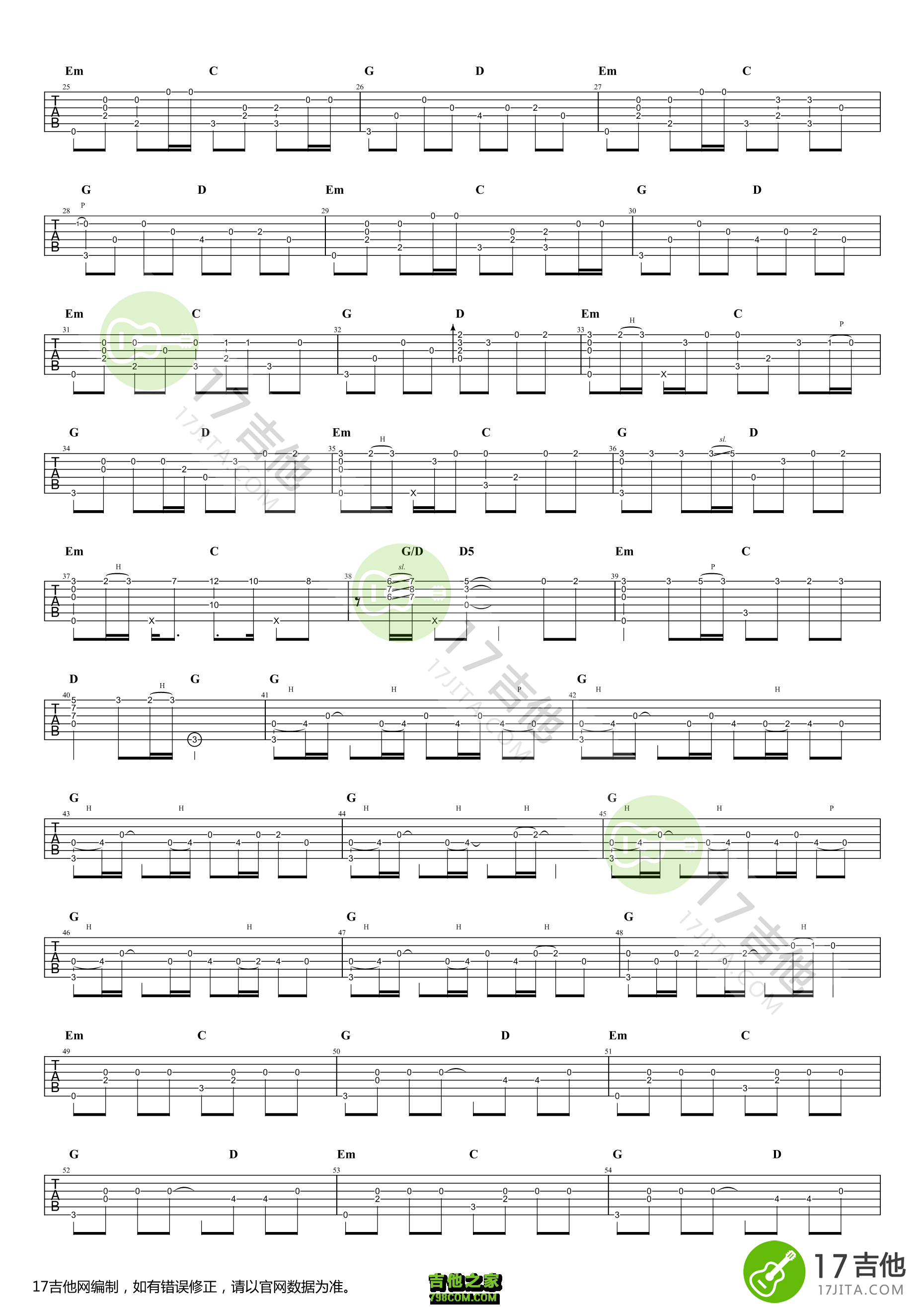 《平常之途》平常之途指弹吉他谱 朴树 G调容易版