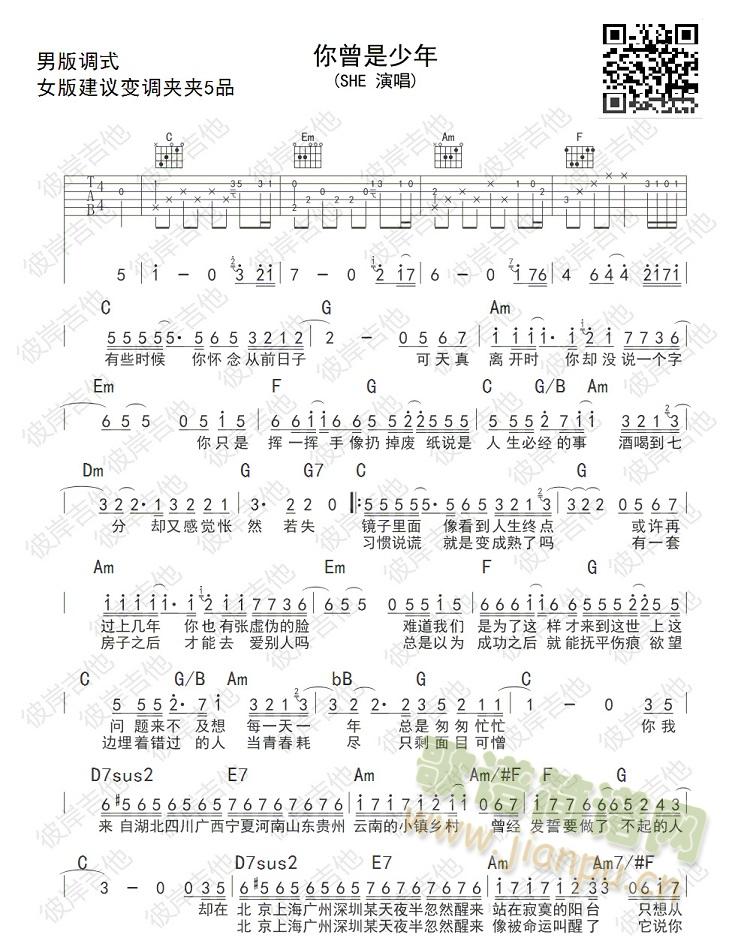 公众号:绵羊乐谱 你曾是少年免费弹唱吉他谱_六线谱/词曲:she 点击: 1000 图片可能经过缩放,手机长按或点开后长按保存,电脑鼠标右键保存. (于雾) 公众号:绵羊乐谱 | 官方QQ群:978773290 不吃独食,学会分享!本文链接:http://www.shaomingyang.com/btb/24729.html 转载请标明出处,尊重原创(๑╹◡╹)ノ。如信息有误或版权疑问,请通过网站底部联系我们会第一时间处理,感谢理解支持(◕ᴗ◕✿)!