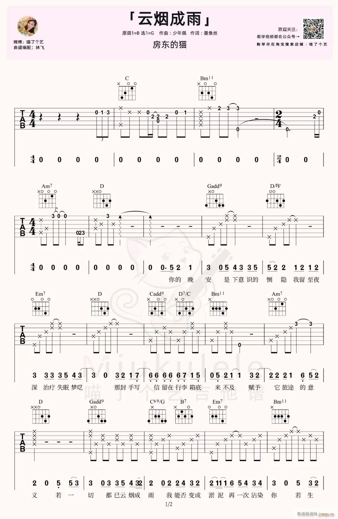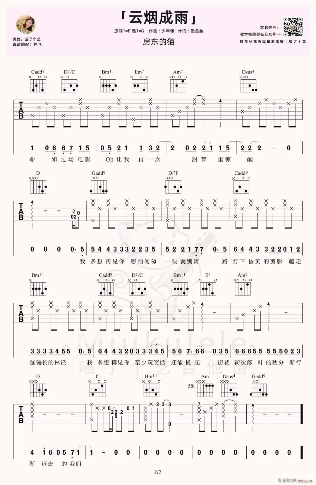 公众号:sheep吉他网(sheepjita)(吉他谱) 云烟成雨 ( G调原版编配)免费弹唱吉他谱_六线谱/词曲:房东的猫 点击: 1000 图片可能经过缩放,手机长按或点开后长按保存,电脑鼠标右键保存. (喵了个艺) 公众号:sheep吉他网(sheepjita)谱不全反馈QQ群:978773290 不吃独食,学会分享!本文链接:http://www.shaomingyang.com/btb/29398.html 郑重声明:本文版权归原作者sheep吉他网所有,转载请标明出处,如信息标记有误,请第一时间联系我们修改或删除,多谢!