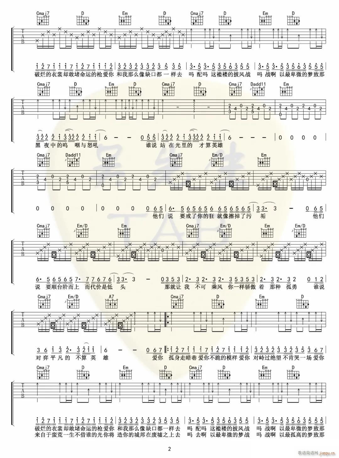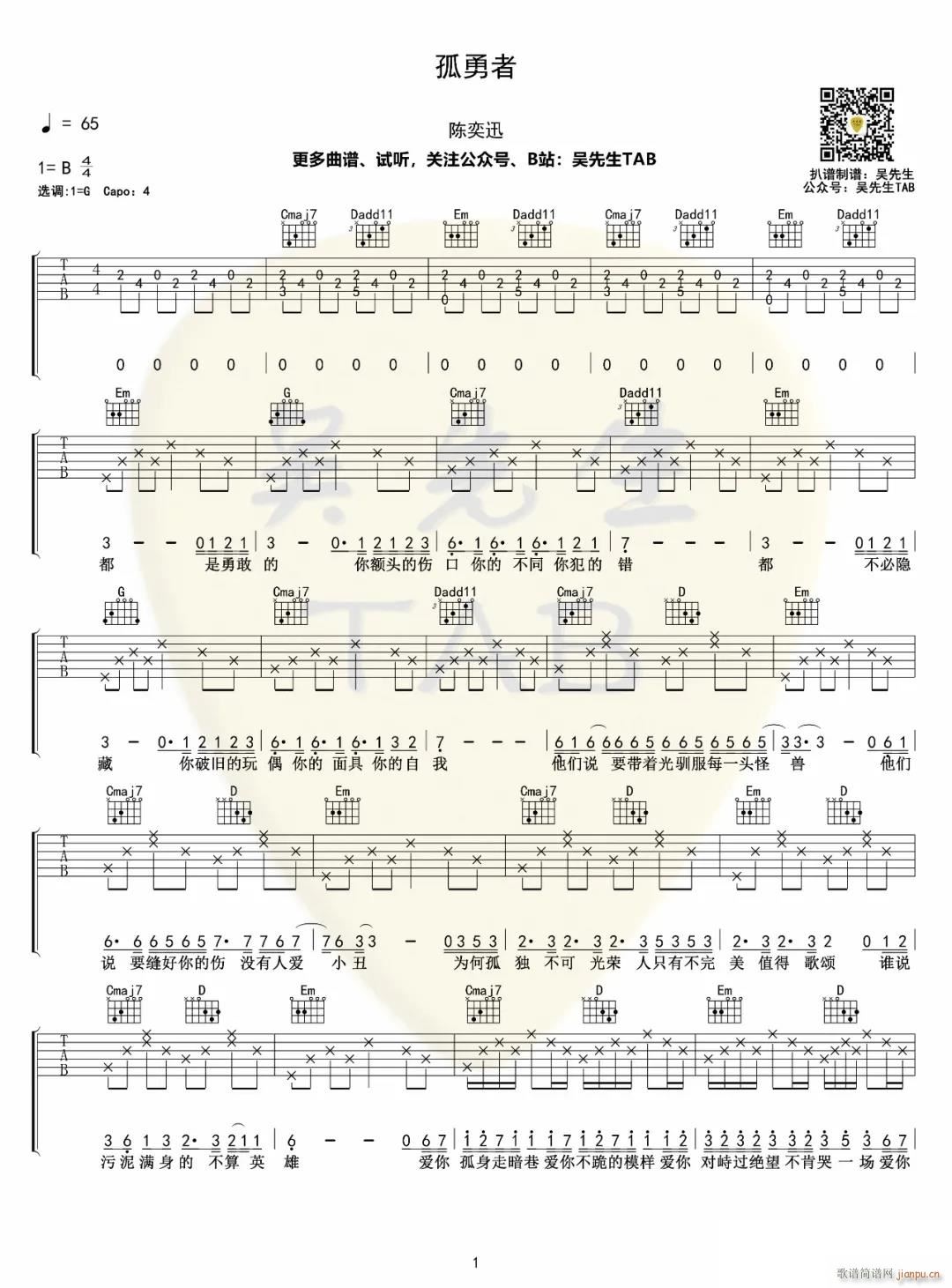 公众号:sheep吉他网(sheepjita)(吉他谱) 孤勇者 ( G调原版编配)免费弹唱吉他谱_六线谱/词曲:陈奕迅 点击: 1000 图片可能经过缩放,手机长按或点开后长按保存,电脑鼠标右键保存. (网络) 公众号:sheep吉他网(sheepjita)谱不全反馈QQ群:978773290 不吃独食,学会分享!本文链接:http://www.shaomingyang.com/btb/29410.html 郑重声明:本文版权归原作者sheep吉他网所有,转载请标明出处,如信息标记有误,请第一时间联系我们修改或删除,多谢!