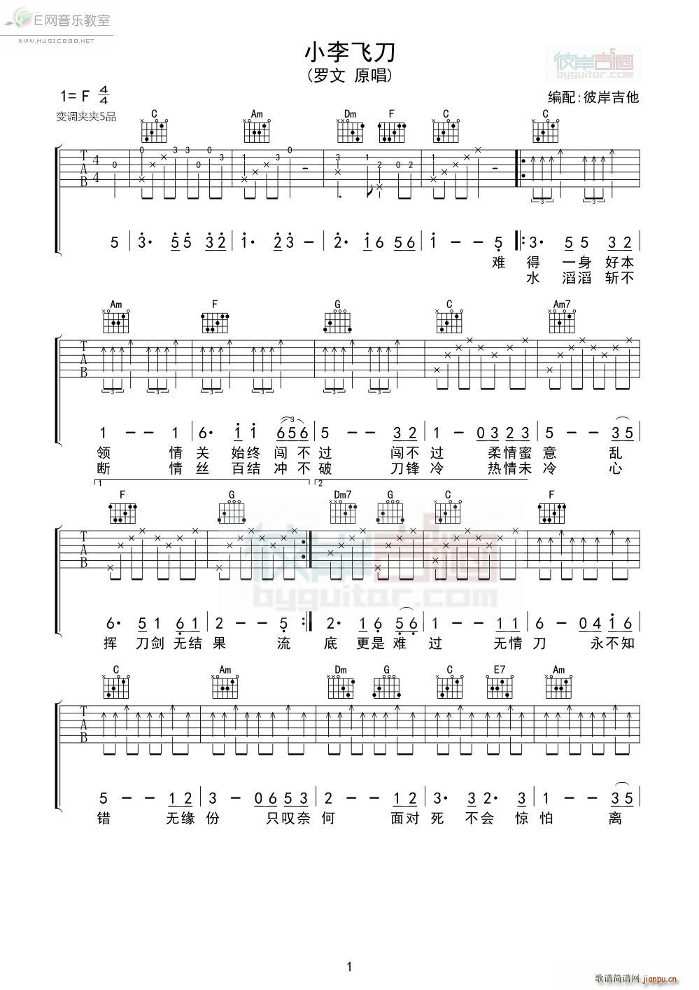 公众号:绵羊乐谱 小李飞刀-罗文免费弹唱吉他谱_六线谱/词曲: 点击: 1000 图片可能经过缩放,手机长按或点开后长按保存,电脑鼠标右键保存. (彼岸吉他) 公众号:绵羊乐谱 | 官方QQ群:978773290 不吃独食,学会分享!本文链接:http://www.shaomingyang.com/btb/29480.html 转载请标明出处,尊重原创(๑╹◡╹)ノ。如信息有误或版权疑问,请通过网站底部联系我们会第一时间处理,感谢理解支持(◕ᴗ◕✿)!