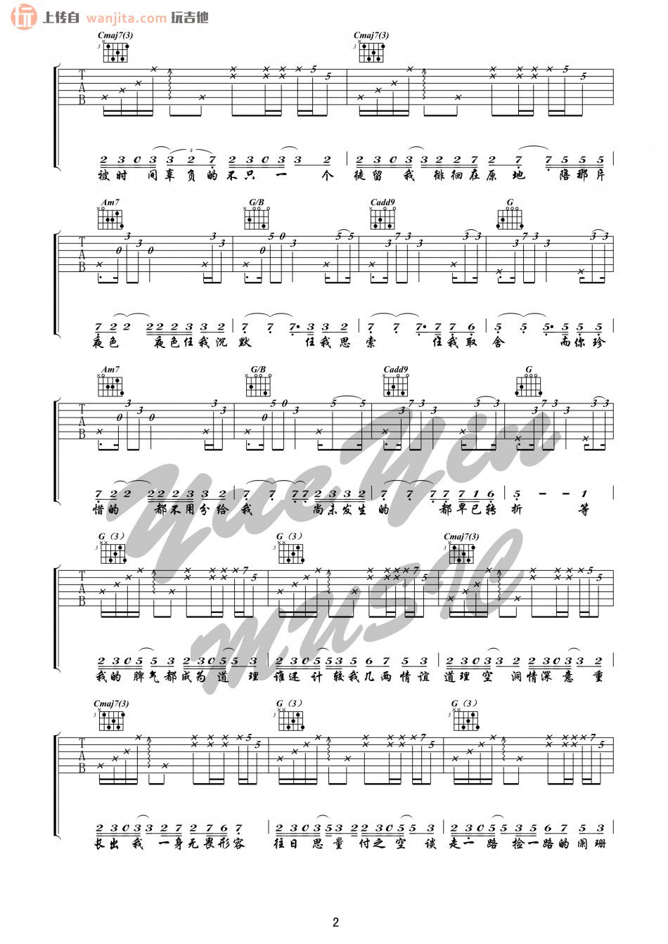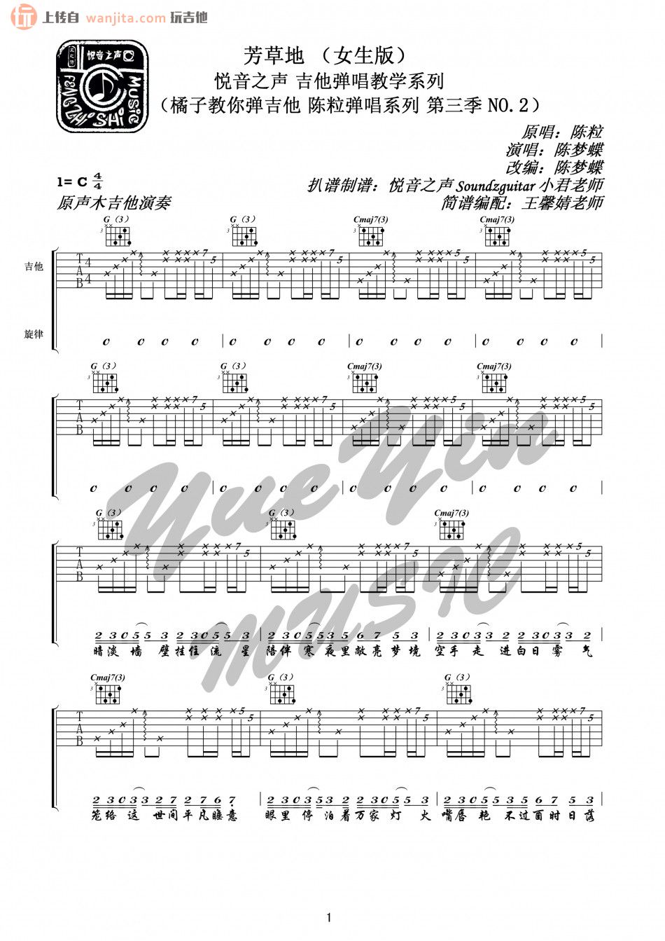 本文题目 芳草地吉他谱 陈粒(C调) 吉他图片谱2张 ,本文网址