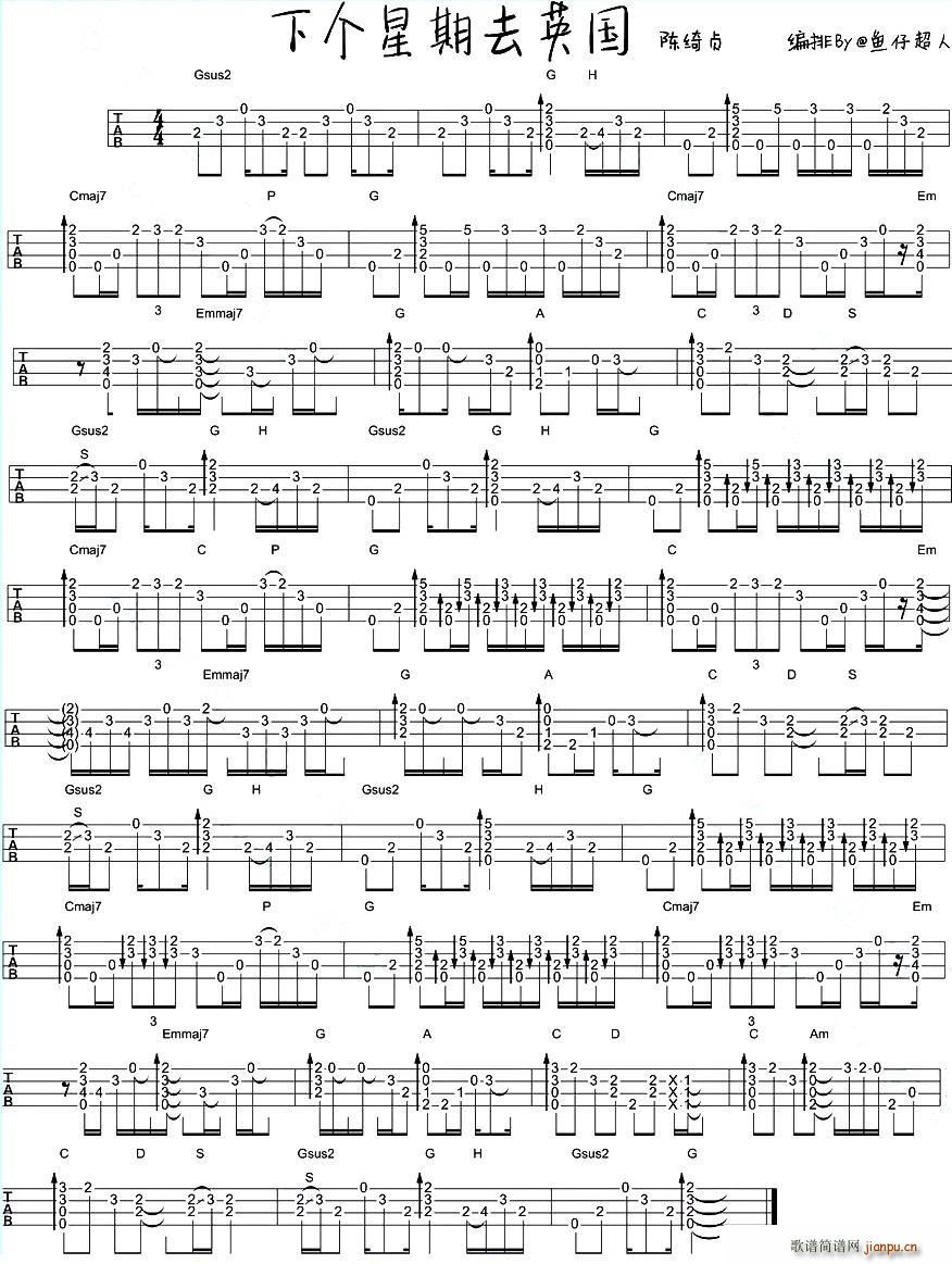 公众号:绵羊乐谱 下个星期去英国(尤克里里指弹谱)免费弹唱吉他谱_六线谱/词曲:陈绮贞 点击: 1000 图片可能经过缩放,手机长按或点开后长按保存,电脑鼠标右键保存. (网络) 公众号:绵羊乐谱 | 官方QQ群:978773290 不吃独食,学会分享!本文链接:http://www.shaomingyang.com/btb/29560.html 转载请标明出处,尊重原创(๑╹◡╹)ノ。如信息有误或版权疑问,请通过网站底部联系我们会第一时间处理,感谢理解支持(◕ᴗ◕✿)!