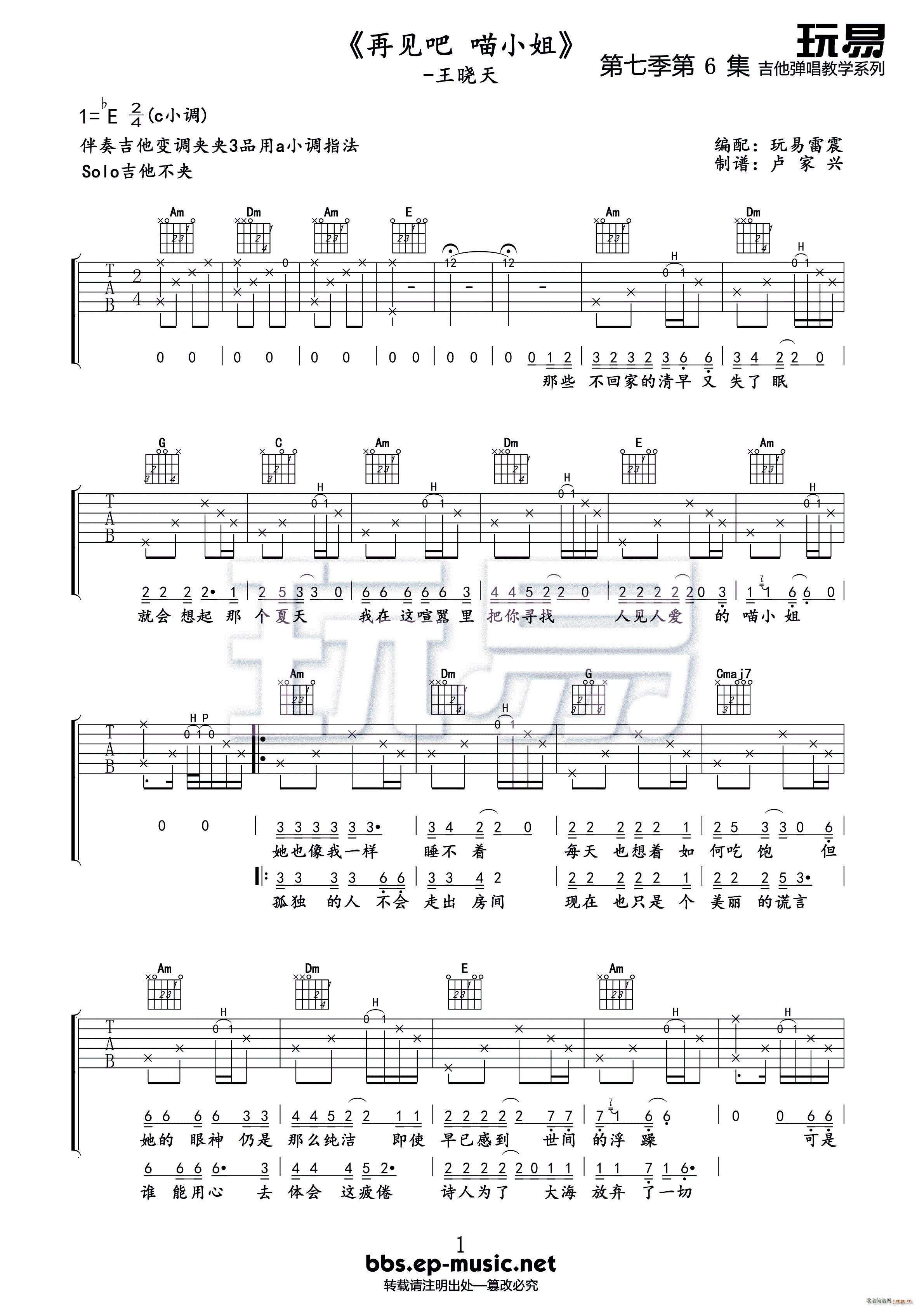 公众号:绵羊乐谱 再见吧 喵小姐(吉他 )免费弹唱吉他谱_六线谱/词曲:王小天未知点击: 1000 图片可能经过缩放,手机长按或点开后长按保存,电脑鼠标右键保存. (网络) 公众号:绵羊乐谱 | 官方QQ群:978773290 不吃独食,学会分享!本文链接:http://www.shaomingyang.com/btb/29589.html 转载请标明出处,尊重原创(๑╹◡╹)ノ。如信息有误或版权疑问,请通过网站底部联系我们会第一时间处理,感谢理解支持(◕ᴗ◕✿)!