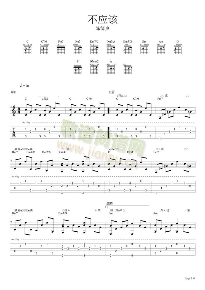 公众号:绵羊乐谱 不应该免费弹唱吉他谱_六线谱:陈绮贞 点击: 1000 图片可能经过缩放,手机长按或点开后长按保存,电脑鼠标右键保存. (乐友儒雅传谱) 公众号:绵羊乐谱 | 官方QQ群:978773290 不吃独食,学会分享!本文链接:http://www.shaomingyang.com/btb/29593.html 转载请标明出处,尊重原创(๑╹◡╹)ノ。如信息有误或版权疑问,请通过网站底部联系我们会第一时间处理,感谢理解支持(◕ᴗ◕✿)!