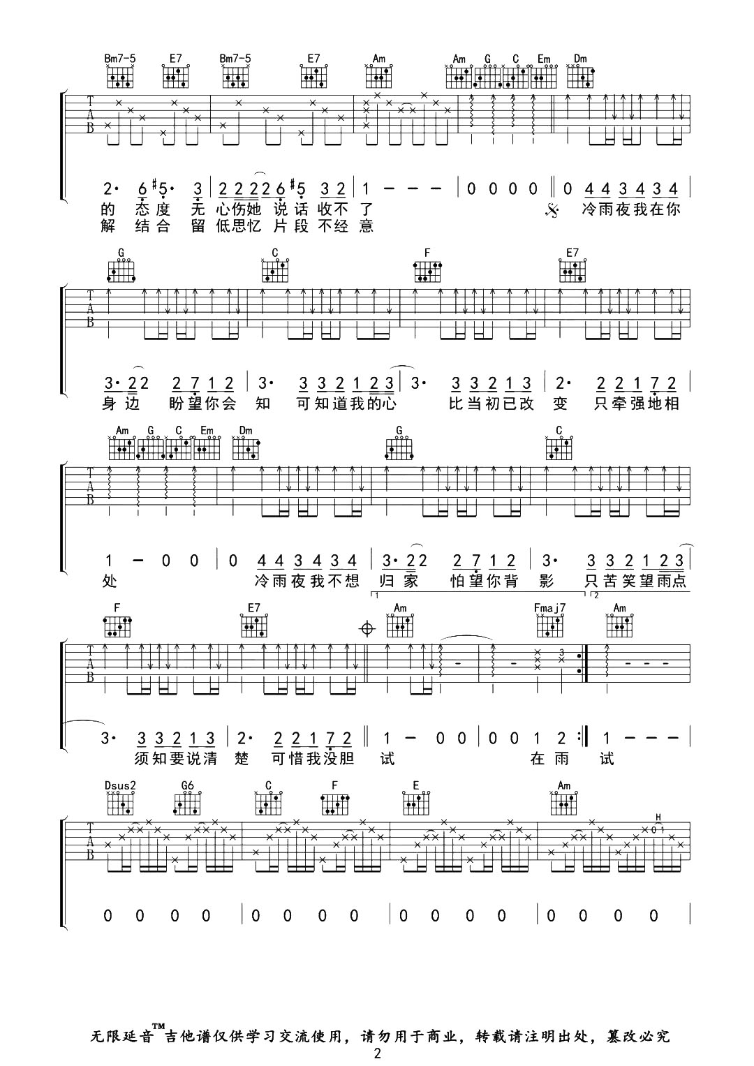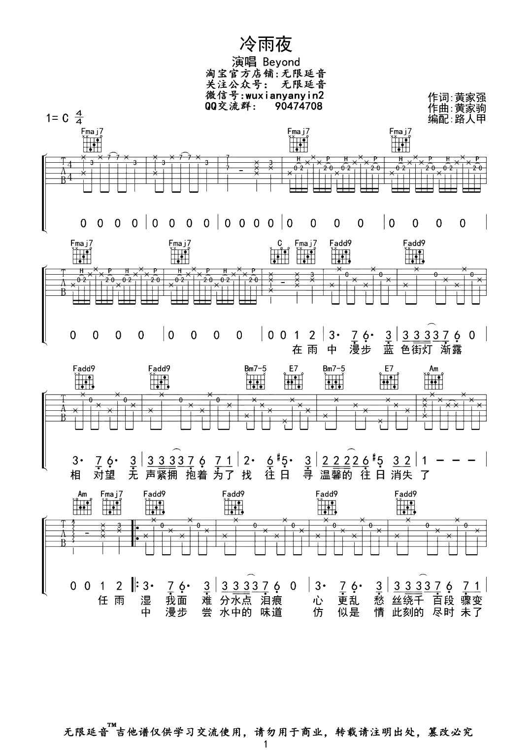 本文题目 冷雨夜吉他谱 Beyond(C调) 吉他图片谱2张 ,本文网址