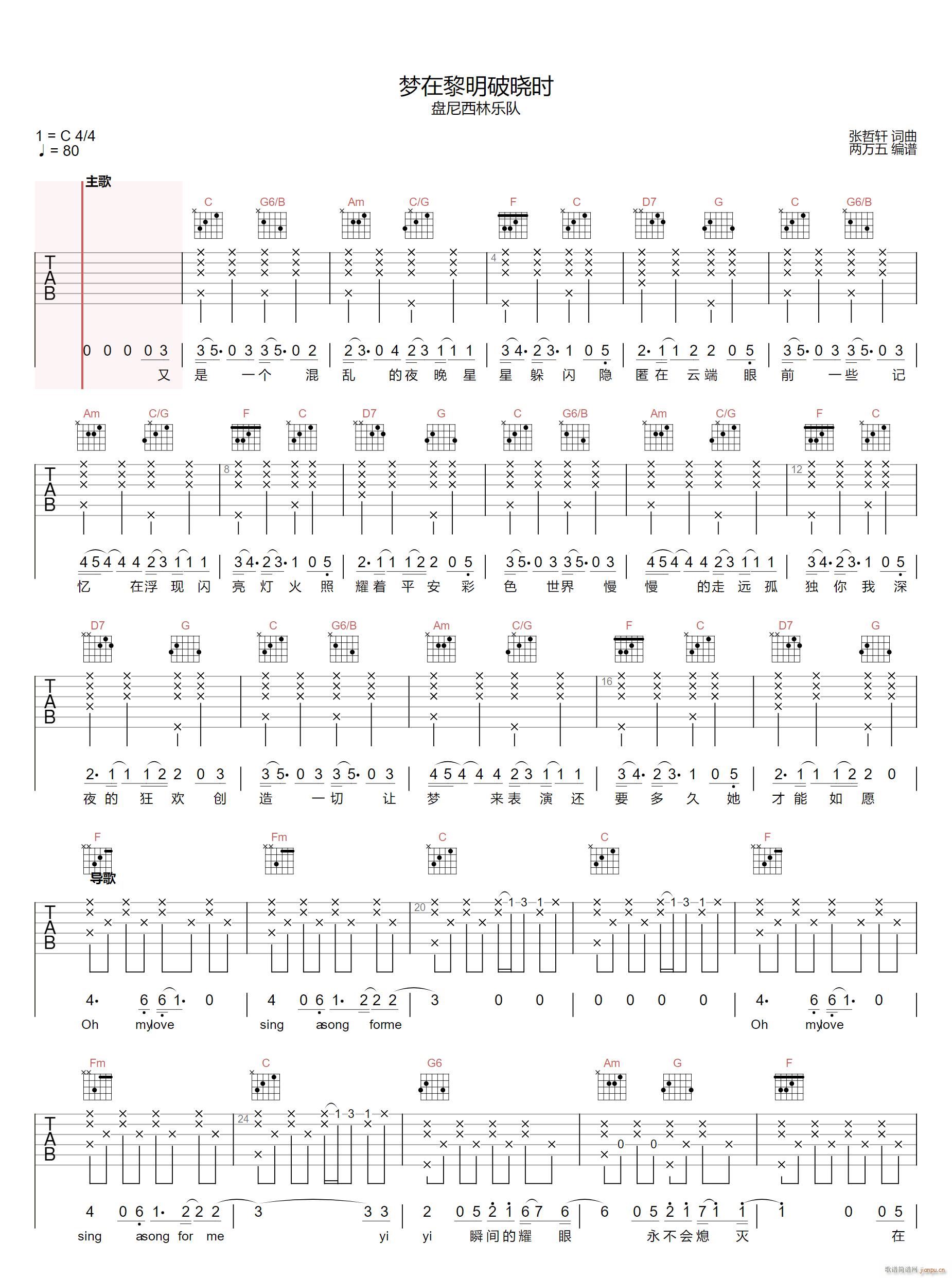 公众号:绵羊乐谱 梦在黎明破晓时 ( C调原版)免费弹唱吉他谱_六线谱/词曲:盘尼西林 点击: 1000 图片可能经过缩放,手机长按或点开后长按保存,电脑鼠标右键保存. (两万五) 公众号:绵羊乐谱 | 官方QQ群:978773290 不吃独食,学会分享!本文链接:http://www.shaomingyang.com/btb/29729.html 转载请标明出处,尊重原创(๑╹◡╹)ノ。如信息有误或版权疑问,请通过网站底部联系我们会第一时间处理,感谢理解支持(◕ᴗ◕✿)!