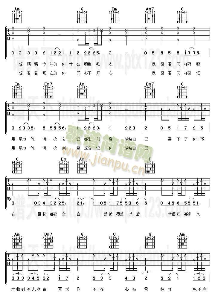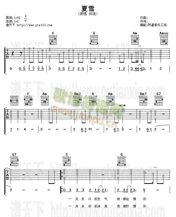 公众号:绵羊乐谱 夏雪(吉他谱)免费弹唱吉他谱_六线谱:何洁 点击: 1000 图片可能经过缩放,手机长按或点开后长按保存,电脑鼠标右键保存. (乐友shuyunfeng传谱) 公众号:绵羊乐谱 | 官方QQ群:978773290 不吃独食,学会分享!本文链接:http://www.shaomingyang.com/btb/29783.html 转载请标明出处,尊重原创(๑╹◡╹)ノ。如信息有误或版权疑问,请通过网站底部联系我们会第一时间处理,感谢理解支持(◕ᴗ◕✿)!