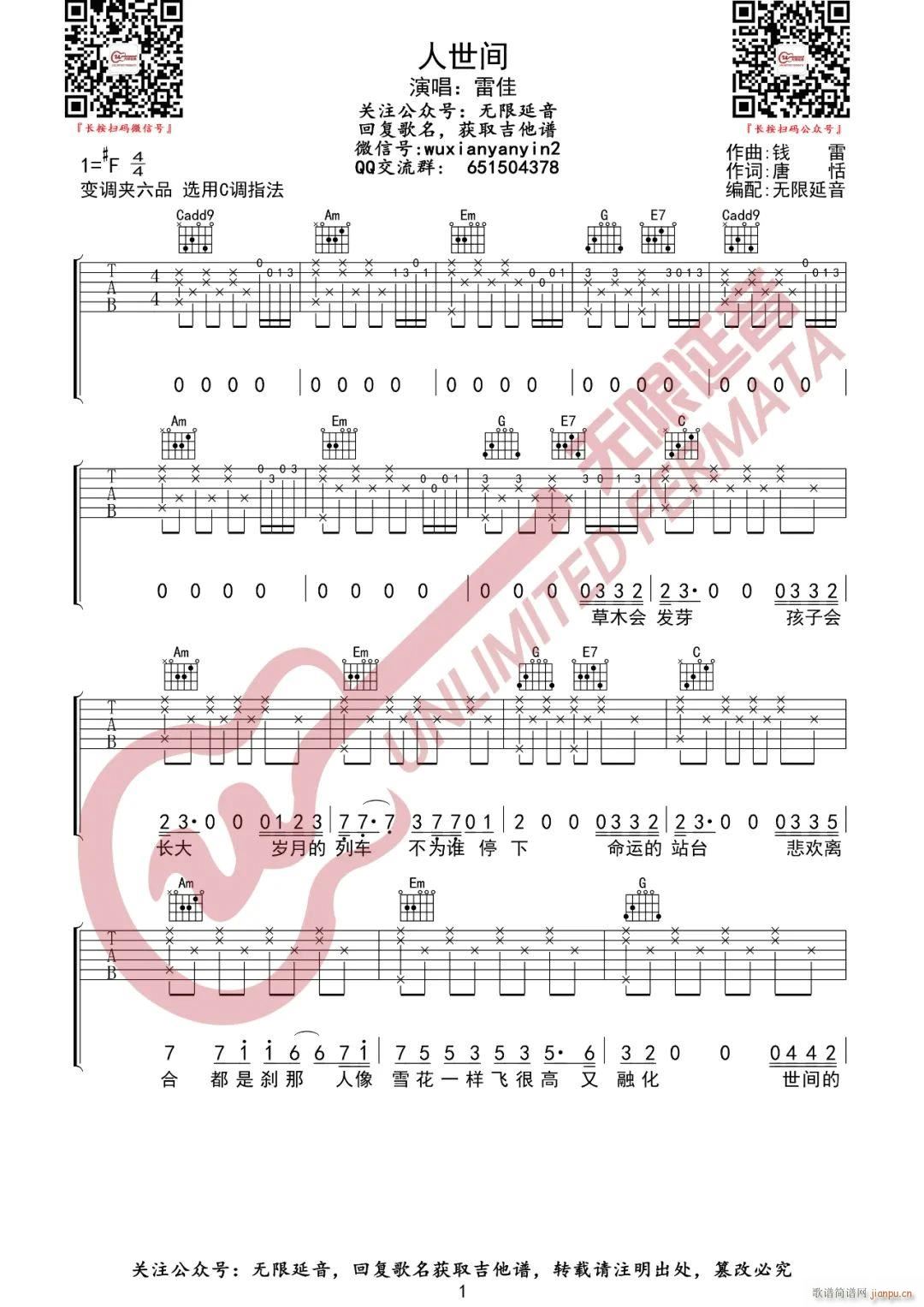 公众号:绵羊乐谱 人世间 ( C调原版编配)免费弹唱吉他谱_六线谱/词曲:雷佳 点击: 1000 图片可能经过缩放,手机长按或点开后长按保存,电脑鼠标右键保存. (无限延音) 公众号:绵羊乐谱 | 官方QQ群:978773290 不吃独食,学会分享!本文链接:http://www.shaomingyang.com/btb/29816.html 转载请标明出处,尊重原创(๑╹◡╹)ノ。如信息有误或版权疑问,请通过网站底部联系我们会第一时间处理,感谢理解支持(◕ᴗ◕✿)!
