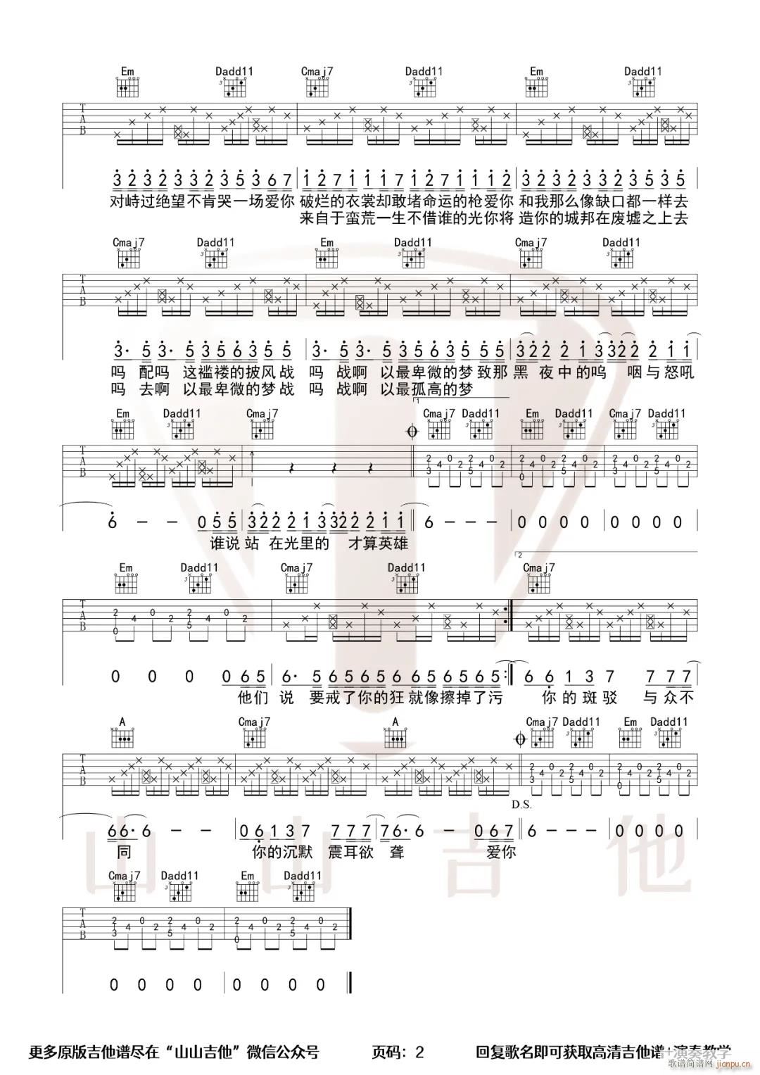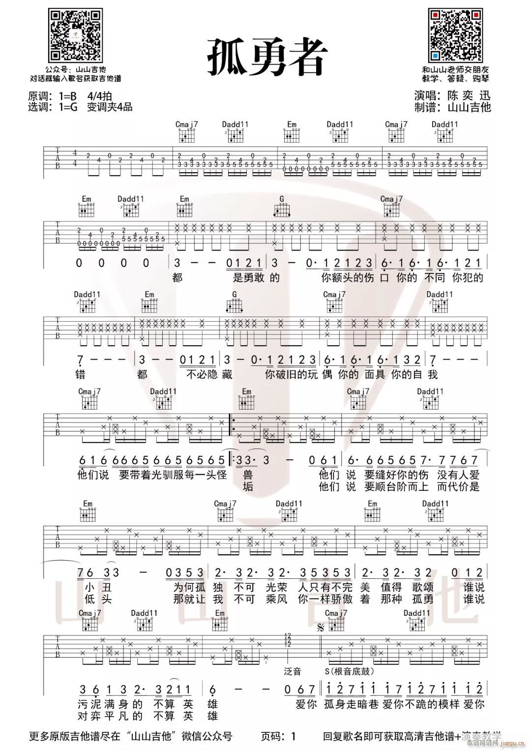 公众号:绵羊乐谱 孤勇者 (G调原版指法)免费弹唱吉他谱_六线谱/词曲:陈奕迅 点击: 1000 图片可能经过缩放,手机长按或点开后长按保存,电脑鼠标右键保存. (山山吉他) 公众号:绵羊乐谱 | 官方QQ群:978773290 不吃独食,学会分享!本文链接:http://www.shaomingyang.com/btb/29971.html 转载请标明出处,尊重原创(๑╹◡╹)ノ。如信息有误或版权疑问,请通过网站底部联系我们会第一时间处理,感谢理解支持(◕ᴗ◕✿)!