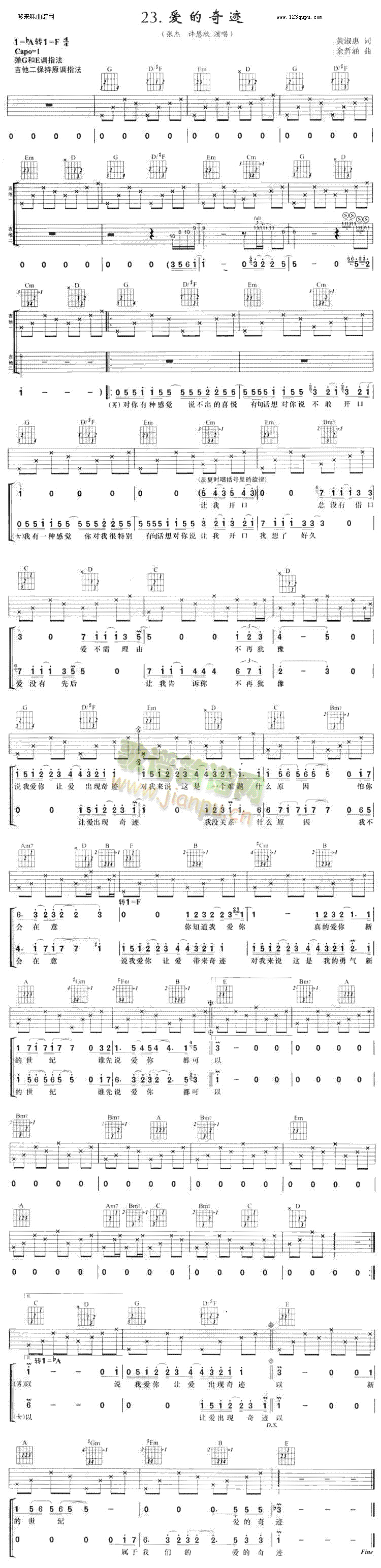 公众号:绵羊乐谱 爱的奇迹(张杰 许慧欣)免费弹唱吉他谱_六线谱:未知 点击: 1000 图片可能经过缩放,手机长按或点开后长按保存,电脑鼠标右键保存. (网络) 公众号:绵羊乐谱 | 官方QQ群:978773290 不吃独食,学会分享!本文链接:http://www.shaomingyang.com/btb/29989.html 转载请标明出处,尊重原创(๑╹◡╹)ノ。如信息有误或版权疑问,请通过网站底部联系我们会第一时间处理,感谢理解支持(◕ᴗ◕✿)!