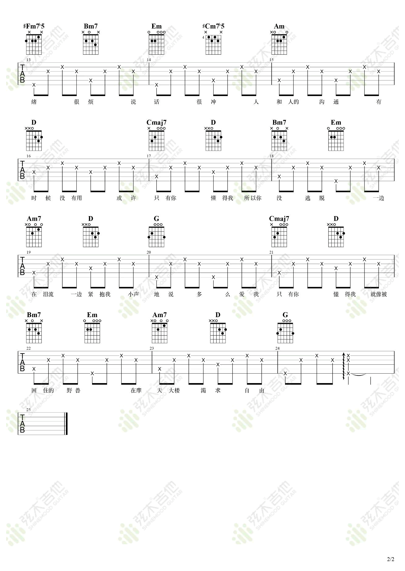 本文题目 思自正在吉他谱 林宥嘉(G调) 吉他图片谱2张 ,本文网址