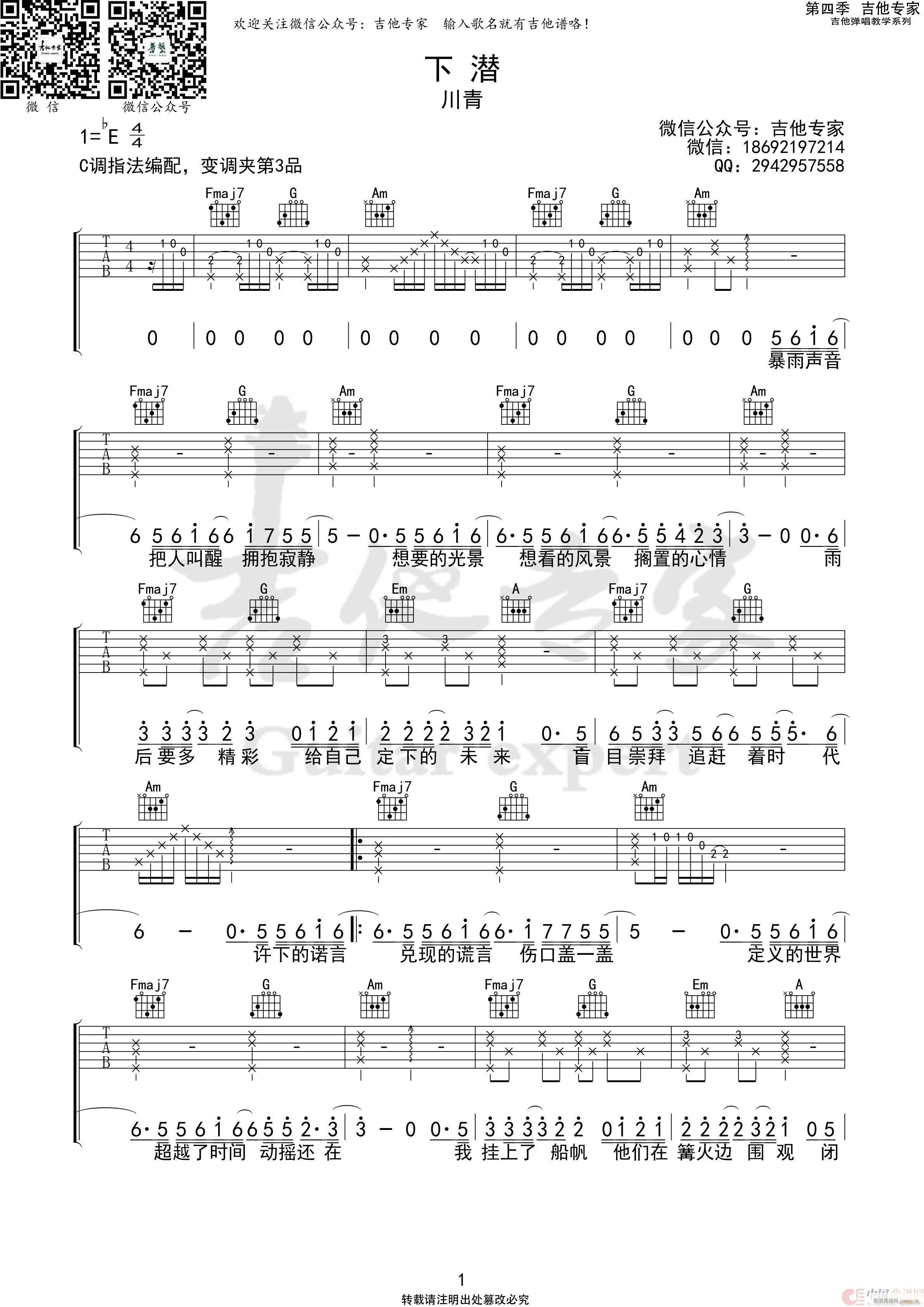 公众号:绵羊乐谱 下潜免费弹唱吉他谱_六线谱/词曲: 点击: 1000 图片可能经过缩放,手机长按或点开后长按保存,电脑鼠标右键保存. (网络) 公众号:绵羊乐谱 | 官方QQ群:978773290 不吃独食,学会分享!本文链接:http://www.shaomingyang.com/btb/30034.html 转载请标明出处,尊重原创(๑╹◡╹)ノ。如信息有误或版权疑问,请通过网站底部联系我们会第一时间处理,感谢理解支持(◕ᴗ◕✿)!