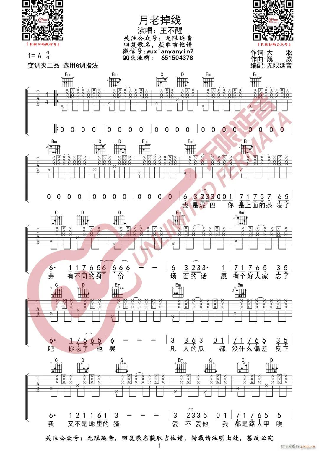 公众号:绵羊乐谱 月老掉线 ( G调原版指法编配)免费弹唱吉他谱_六线谱/词曲:王不醒 点击: 1000 图片可能经过缩放,手机长按或点开后长按保存,电脑鼠标右键保存. (无限延音) 公众号:绵羊乐谱 | 官方QQ群:978773290 不吃独食,学会分享!本文链接:http://www.shaomingyang.com/btb/30052.html 转载请标明出处,尊重原创(๑╹◡╹)ノ。如信息有误或版权疑问,请通过网站底部联系我们会第一时间处理,感谢理解支持(◕ᴗ◕✿)!