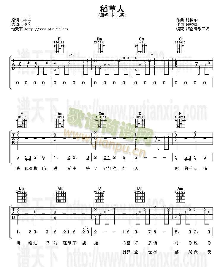 公众号:绵羊乐谱 稻草人(吉他谱)免费弹唱吉他谱_六线谱:林志颖 点击: 1000 图片可能经过缩放,手机长按或点开后长按保存,电脑鼠标右键保存. (乐友shuyunfeng传谱) 公众号:绵羊乐谱 | 官方QQ群:978773290 不吃独食,学会分享!本文链接:http://www.shaomingyang.com/btb/30107.html 转载请标明出处,尊重原创(๑╹◡╹)ノ。如信息有误或版权疑问,请通过网站底部联系我们会第一时间处理,感谢理解支持(◕ᴗ◕✿)!