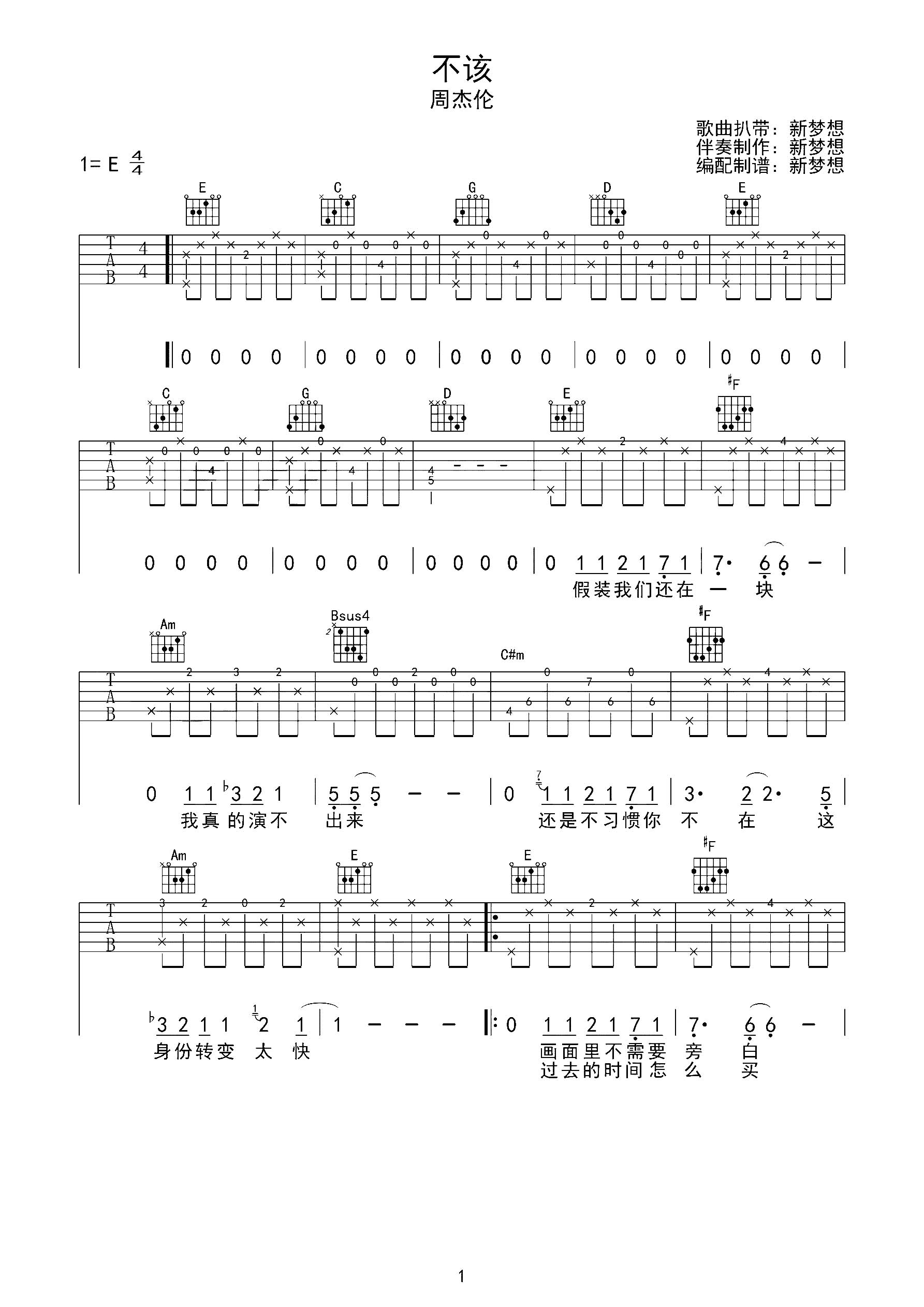 本文题目 不该吉他谱 周杰伦(E调) 吉他图片谱2张 ,本文网址