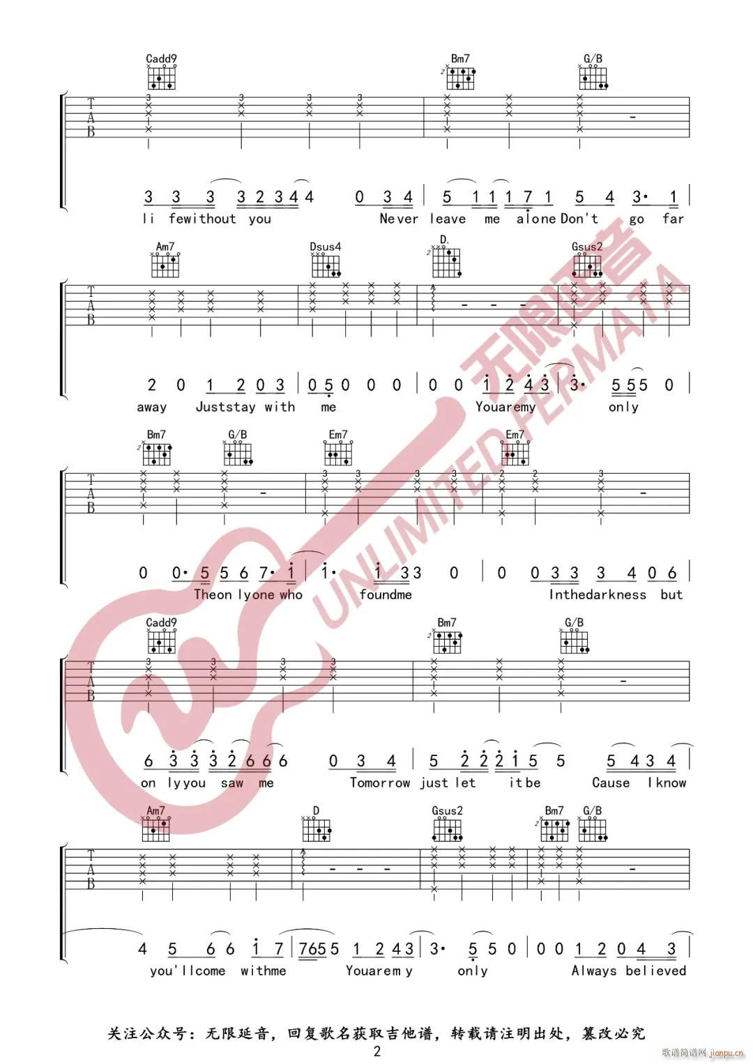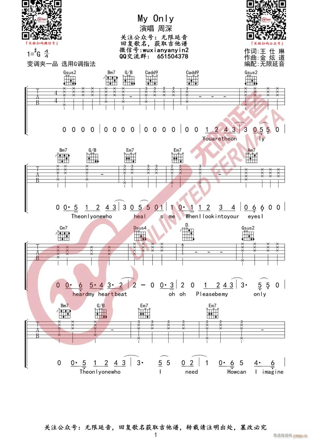 公众号:绵羊乐谱 My-Only ( G调指法编配)免费弹唱吉他谱_六线谱/词曲:周深 点击: 1000 图片可能经过缩放,手机长按或点开后长按保存,电脑鼠标右键保存. (无限延音) 公众号:绵羊乐谱 | 官方QQ群:978773290 不吃独食,学会分享!本文链接:http://www.shaomingyang.com/btb/30116.html 转载请标明出处,尊重原创(๑╹◡╹)ノ。如信息有误或版权疑问,请通过网站底部联系我们会第一时间处理,感谢理解支持(◕ᴗ◕✿)!