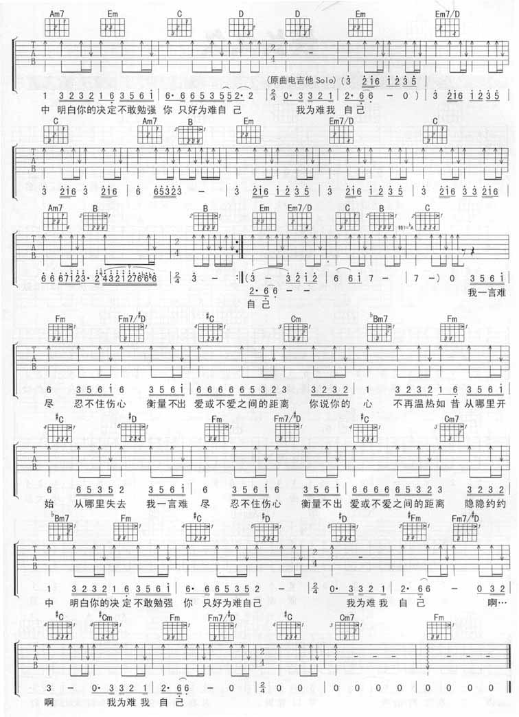 本文题目 一言难尽吉他谱 张宇 吉他图片谱2张 ,本文网址