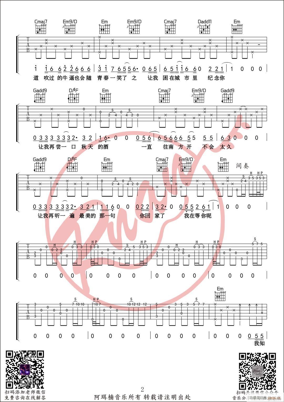 公众号:绵羊乐谱 《安和桥》附间奏免费弹唱吉他谱_六线谱/词曲:宋冬野 点击: 1000 图片可能经过缩放,手机长按或点开后长按保存,电脑鼠标右键保存. (阿珥楠吉他工作室) 公众号:绵羊乐谱 | 官方QQ群:978773290 不吃独食,学会分享!本文链接:http://www.shaomingyang.com/btb/30139.html 转载请标明出处,尊重原创(๑╹◡╹)ノ。如信息有误或版权疑问,请通过网站底部联系我们会第一时间处理,感谢理解支持(◕ᴗ◕✿)!