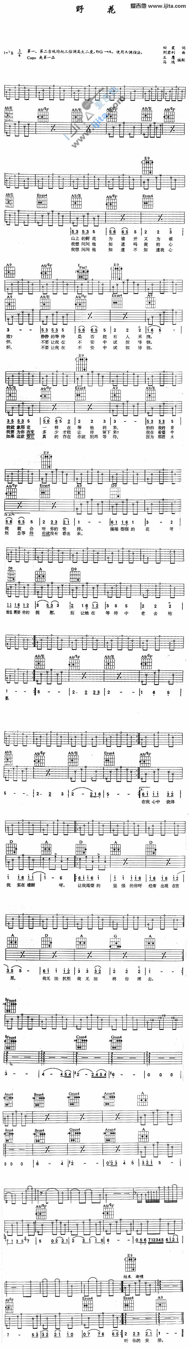 本文题目 野花(田震)吉他谱 田震 吉他图片谱1张 ,本文网址