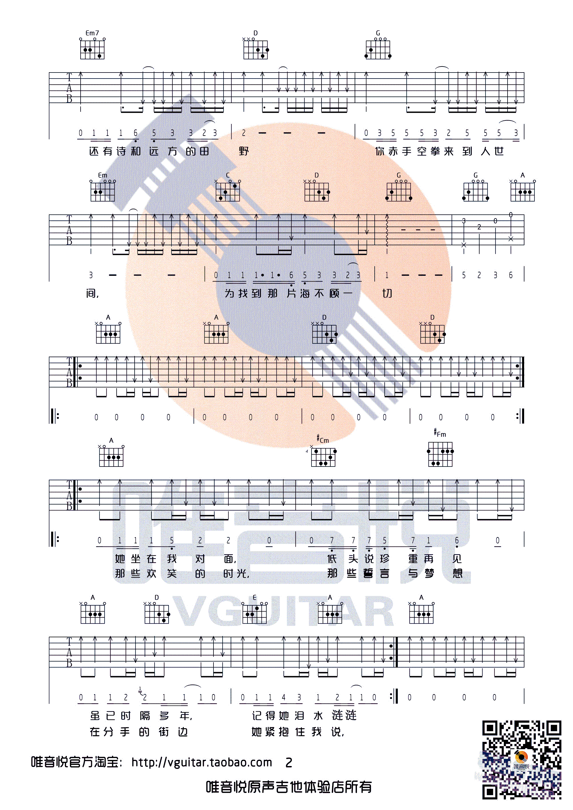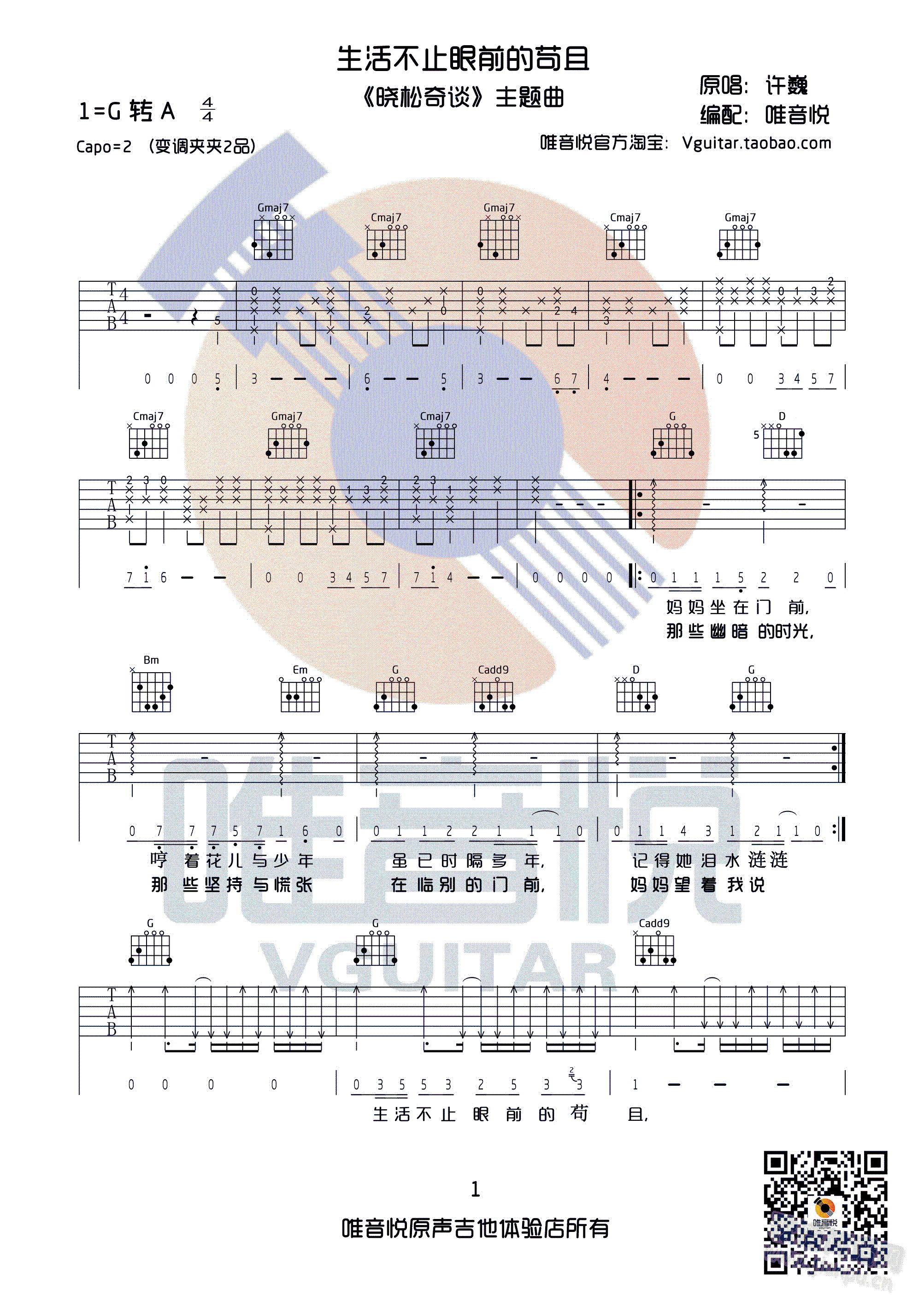 公众号:绵羊乐谱 生活不止眼前的苟且免费弹唱吉他谱_六线谱/词曲:许巍 许巍 G调原版完整版吉他谱 唯音悦制谱 晓松奇谈主题曲 最近开始出教学视频 不懂的童鞋可以看我们的视频哦 关注我们的优酷频道,搜索唯音悦,即可观看视频! 唯音悦官方淘宝:点击: 1000 图片可能经过缩放,手机长按或点开后长按保存,电脑鼠标右键保存. (唯音悦原声吉他体验店) 公众号:绵羊乐谱 | 官方QQ群:978773290 不吃独食,学会分享!本文链接:http://www.shaomingyang.com/btb/30173.html 转载请标明出处,尊重原创(๑╹◡╹)ノ。如信息有误或版权疑问,请通过网站底部联系我们会第一时间处理,感谢理解支持(◕ᴗ◕✿)!