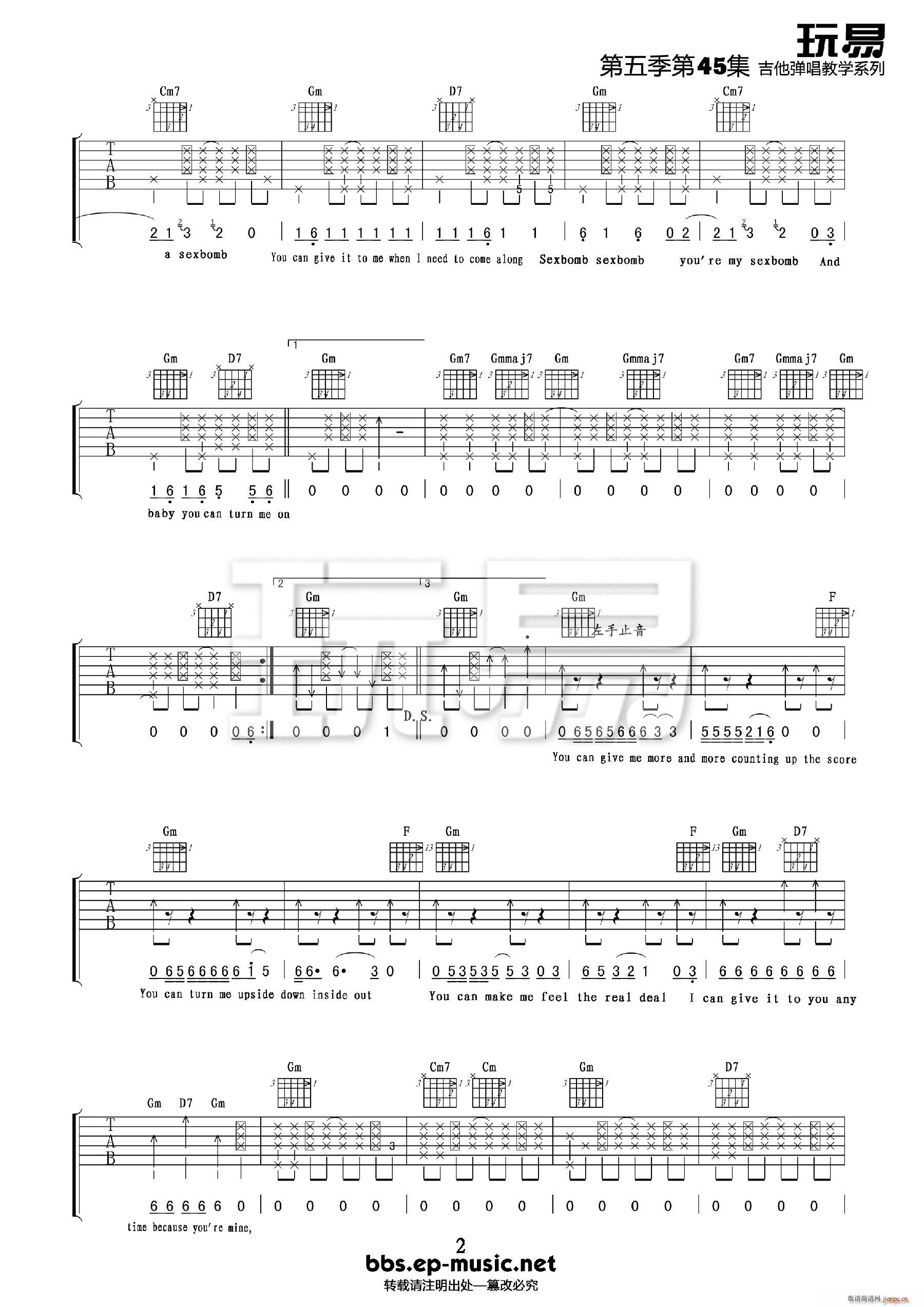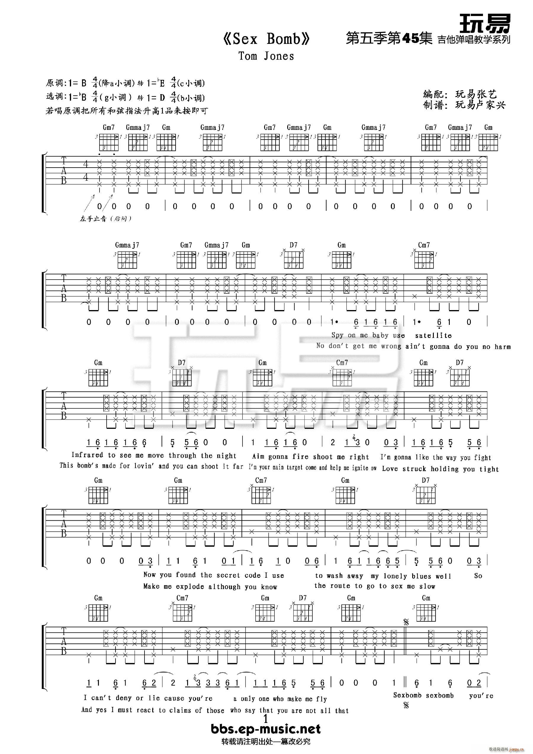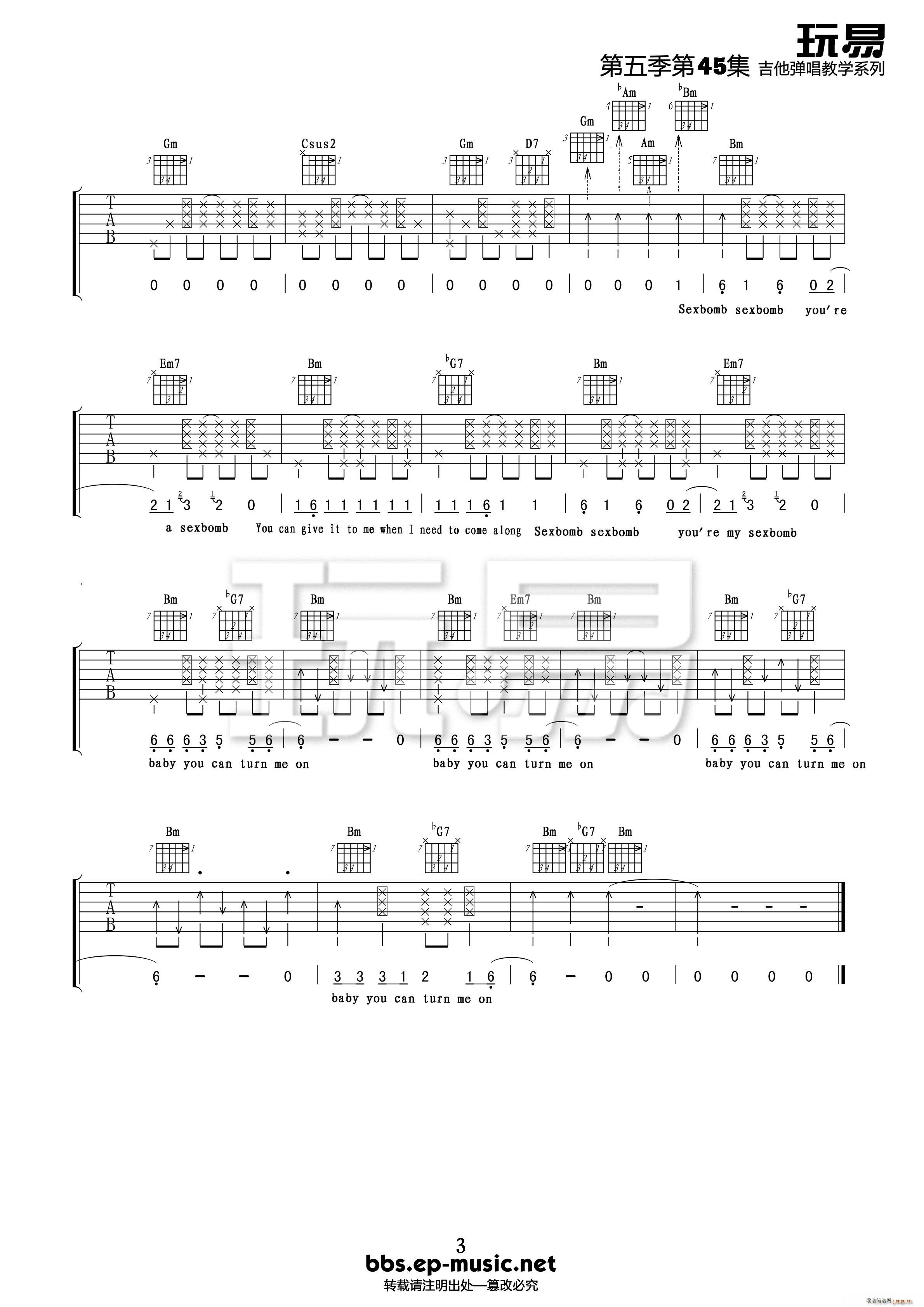 公众号:绵羊乐谱 Sex Bomb(吉他谱)免费弹唱吉他谱_六线谱/词曲: 卢家兴点击: 1000 图片可能经过缩放,手机长按或点开后长按保存,电脑鼠标右键保存. (卢家兴) 公众号:绵羊乐谱 | 官方QQ群:978773290 不吃独食,学会分享!本文链接:http://www.shaomingyang.com/btb/30198.html 转载请标明出处,尊重原创(๑╹◡╹)ノ。如信息有误或版权疑问,请通过网站底部联系我们会第一时间处理,感谢理解支持(◕ᴗ◕✿)!