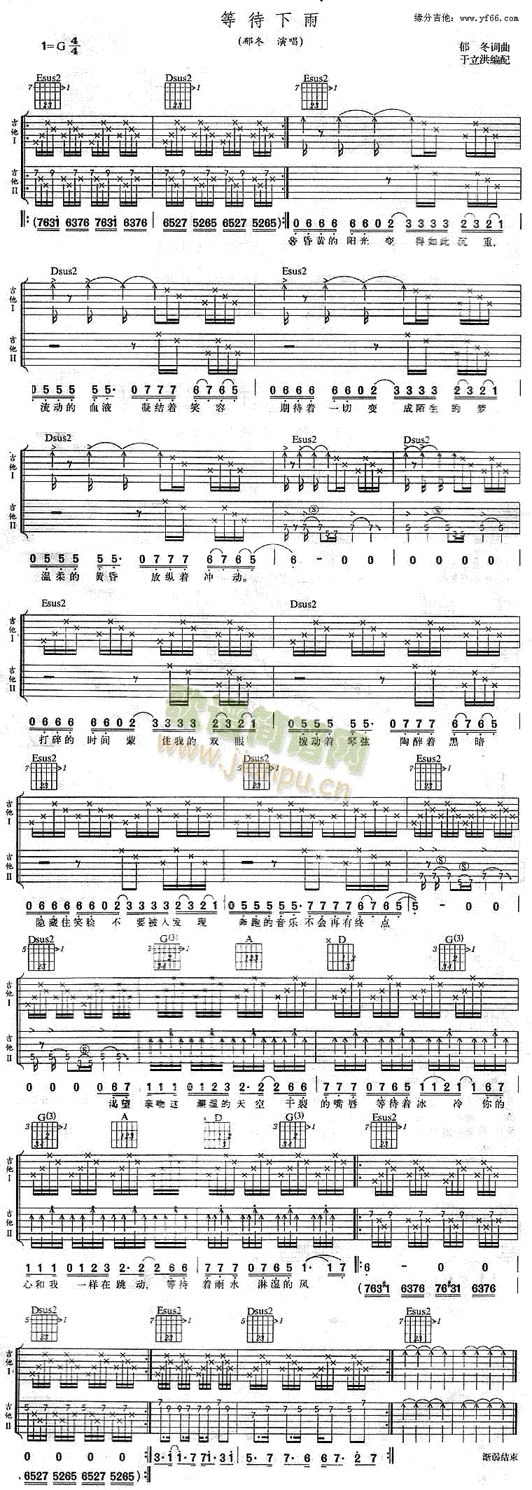 公众号:绵羊乐谱 等待下雨免费弹唱吉他谱_六线谱:郁冬 点击: 1000 图片可能经过缩放,手机长按或点开后长按保存,电脑鼠标右键保存. (网络) 公众号:绵羊乐谱 | 官方QQ群:978773290 不吃独食,学会分享!本文链接:http://www.shaomingyang.com/btb/30216.html 转载请标明出处,尊重原创(๑╹◡╹)ノ。如信息有误或版权疑问,请通过网站底部联系我们会第一时间处理,感谢理解支持(◕ᴗ◕✿)!