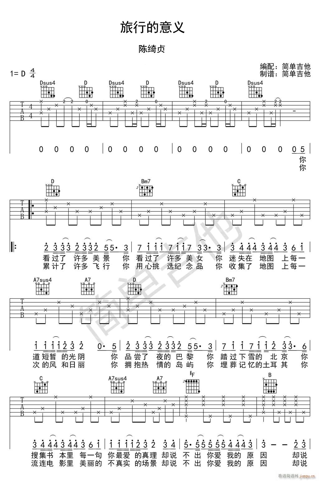 公众号:绵羊乐谱 旅行的意义 ( D调原版编配)免费弹唱吉他谱_六线谱/词曲:陈绮贞 点击: 1000 图片可能经过缩放,手机长按或点开后长按保存,电脑鼠标右键保存. (简单吉他) 公众号:绵羊乐谱 | 官方QQ群:978773290 不吃独食,学会分享!本文链接:http://www.shaomingyang.com/btb/30218.html 转载请标明出处,尊重原创(๑╹◡╹)ノ。如信息有误或版权疑问,请通过网站底部联系我们会第一时间处理,感谢理解支持(◕ᴗ◕✿)!