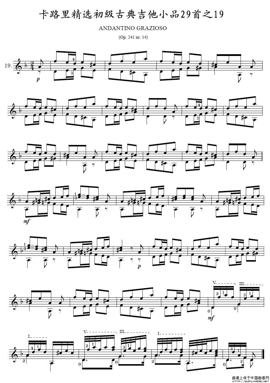 公众号:绵羊乐谱 卡路里精选初级古典吉他小品29首之19免费弹唱吉他谱_六线谱: 点击: 1000 图片可能经过缩放,手机长按或点开后长按保存,电脑鼠标右键保存. (转自我的《中国曲谱网》) 公众号:绵羊乐谱 | 官方QQ群:978773290 不吃独食,学会分享!本文链接:http://www.shaomingyang.com/btb/30248.html 转载请标明出处,尊重原创(๑╹◡╹)ノ。如信息有误或版权疑问,请通过网站底部联系我们会第一时间处理,感谢理解支持(◕ᴗ◕✿)!