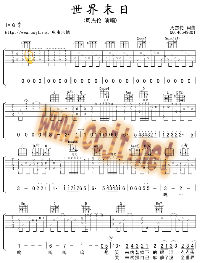 公众号:绵羊乐谱 世界末日吉他谱(和弦 六线谱)-免费弹唱吉他谱_六线谱:未知 点击: 1000 图片可能经过缩放,手机长按或点开后长按保存,电脑鼠标右键保存. (网络) 公众号:绵羊乐谱 | 官方QQ群:978773290 不吃独食,学会分享!本文链接:http://www.shaomingyang.com/btb/30301.html 转载请标明出处,尊重原创(๑╹◡╹)ノ。如信息有误或版权疑问,请通过网站底部联系我们会第一时间处理,感谢理解支持(◕ᴗ◕✿)!