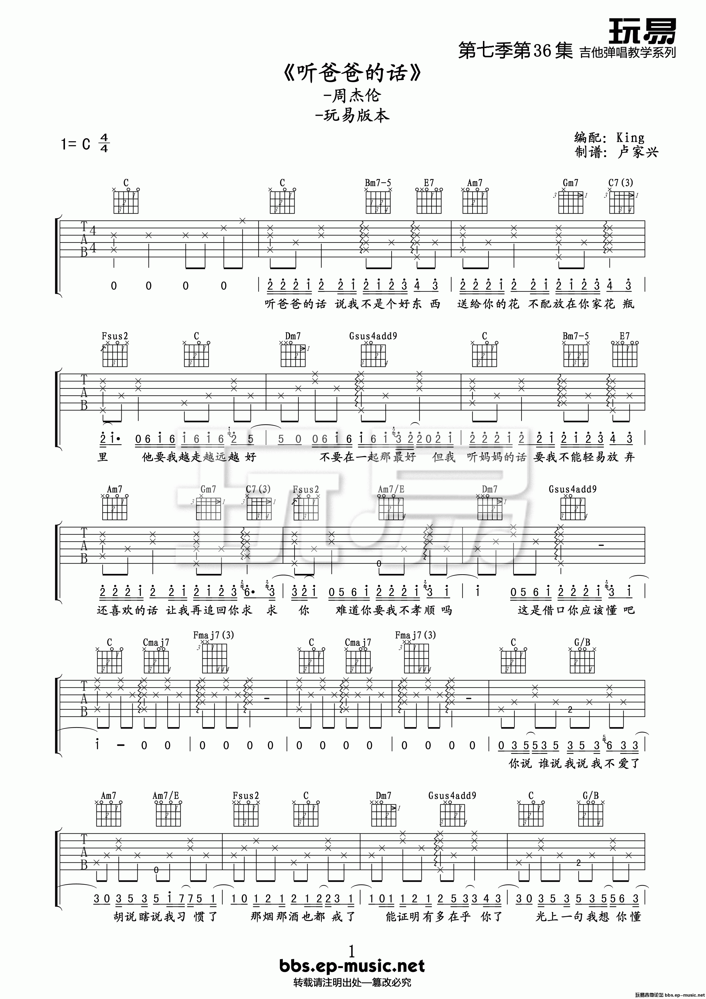 公众号:绵羊乐谱 由玩易吉他制谱的《听爸爸的线高清图片谱,选用C调指法,节拍4/4拍,不使用变调夹,弹唱难度初级。 周杰伦《听爸爸的线 周杰伦《听爸爸的线 公众号:绵羊乐谱 | 官方QQ群:978773290 不吃独食,学会分享!本文链接:http://www.shaomingyang.com/btb/30411.html 转载请标明出处,尊重原创(๑╹◡╹)ノ。如信息有误或版权疑问,请通过网站底部联系我们会第一时间处理,感谢理解支持(◕ᴗ◕✿)!