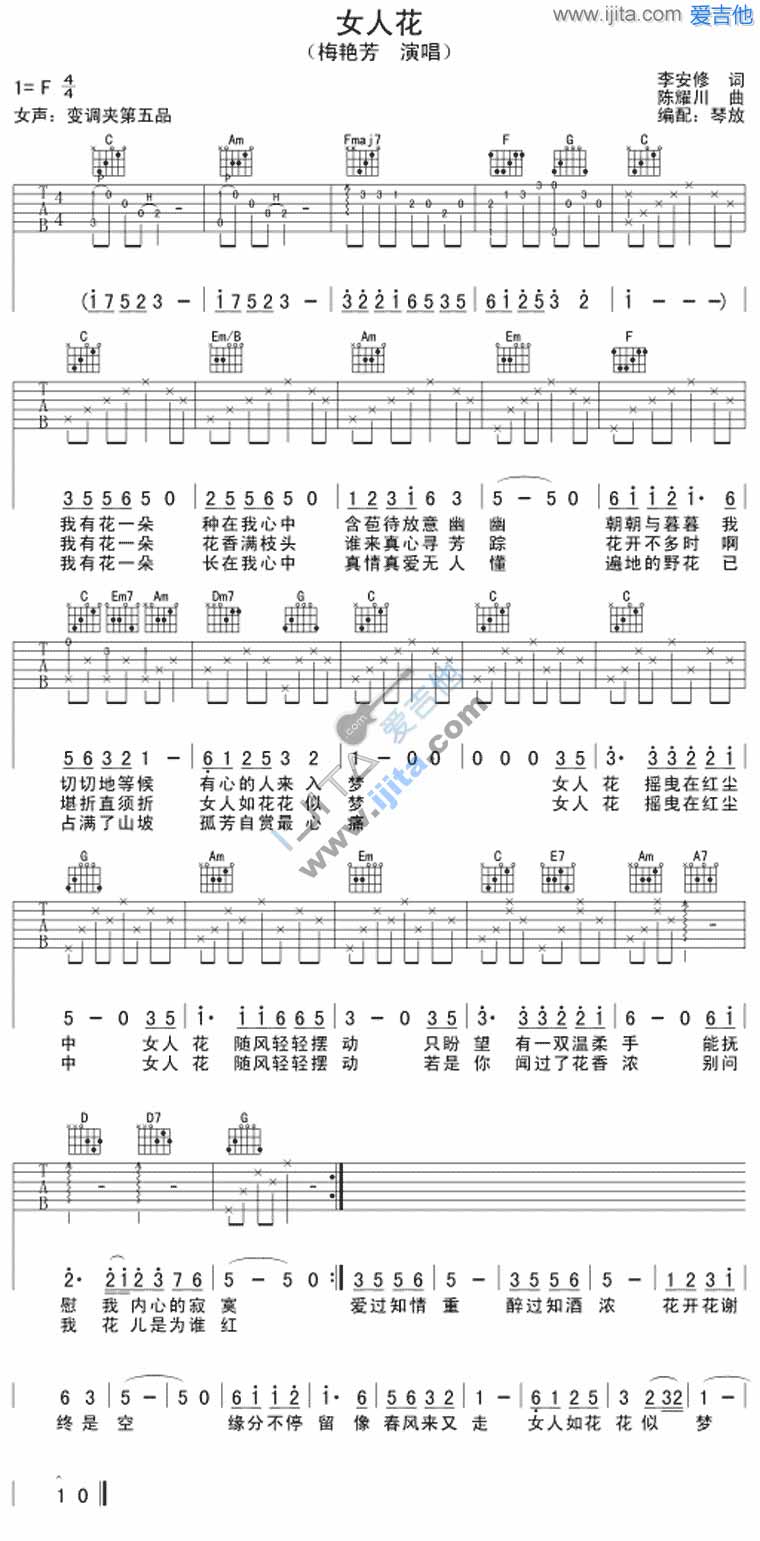 本文题目 女人花(梅艳芳)吉他谱 梅艳芳 吉他图片谱1张 ,本文网址