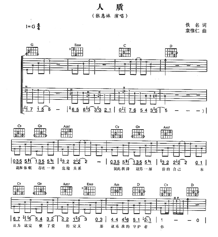本文题目 《人质》张惠妹 吉他谱 张惠妹 吉他图片谱5张 ,本文网址