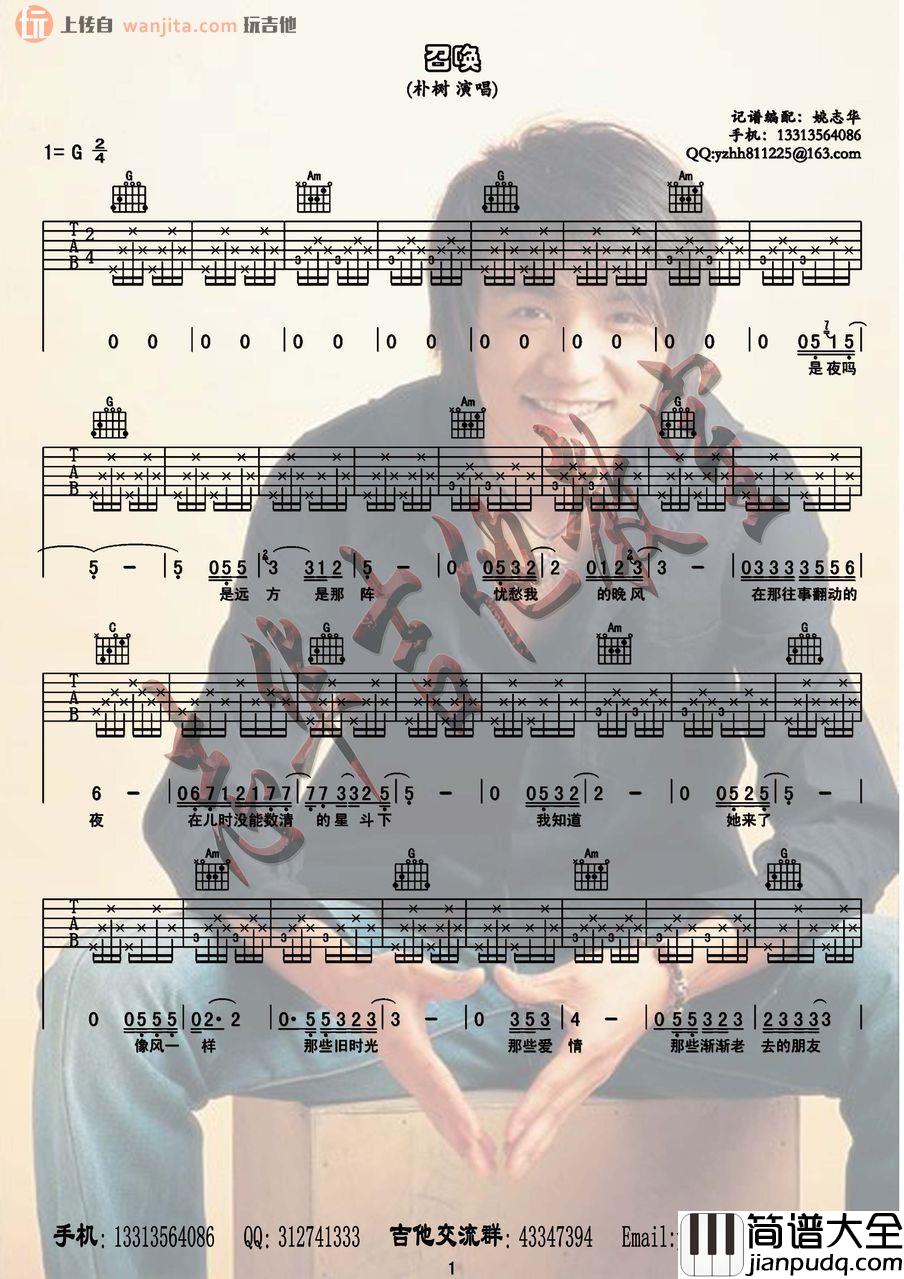 朴树《召唤》吉他谱-图1